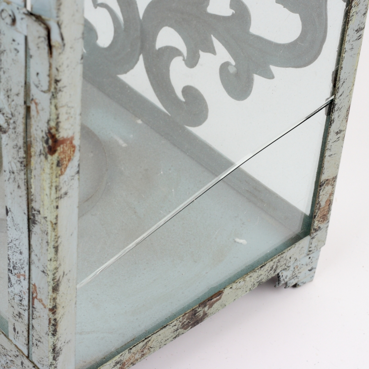 Kovová lampáš šedá zdobená 63x32x21cm vyřazeno - bez zasklení