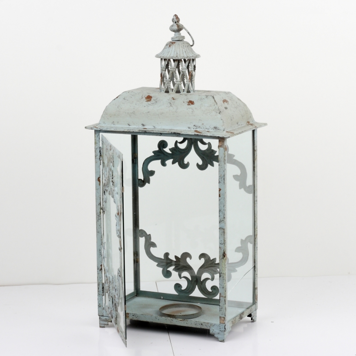 Kovová lucerna šedá zdobená 63x32x21cm II.jakost