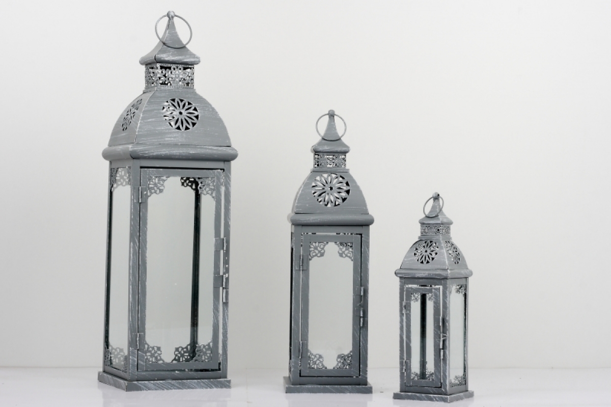 Kovová lampáš sivá s patinou zdobená 70cm rozžiari svetlom sviečky celý priestor obývacej izby, chodby i vonkajšie sedenie pod zastrešenou pergolou. Príjemnú a útulnú atmosféru si môžete vytvoriť kdekoľvek budete chcieť.