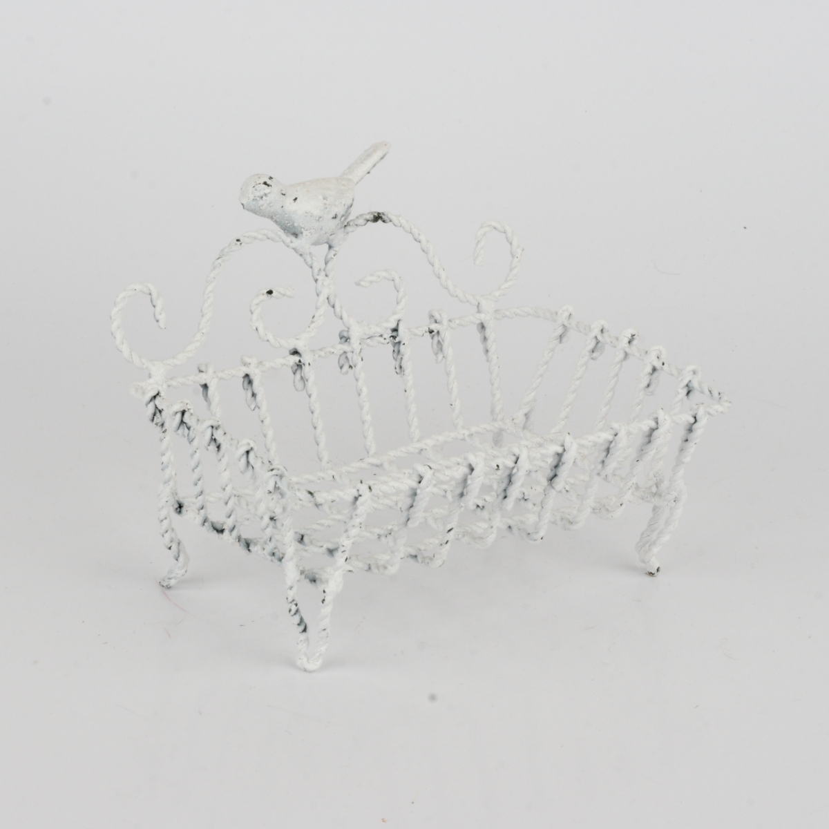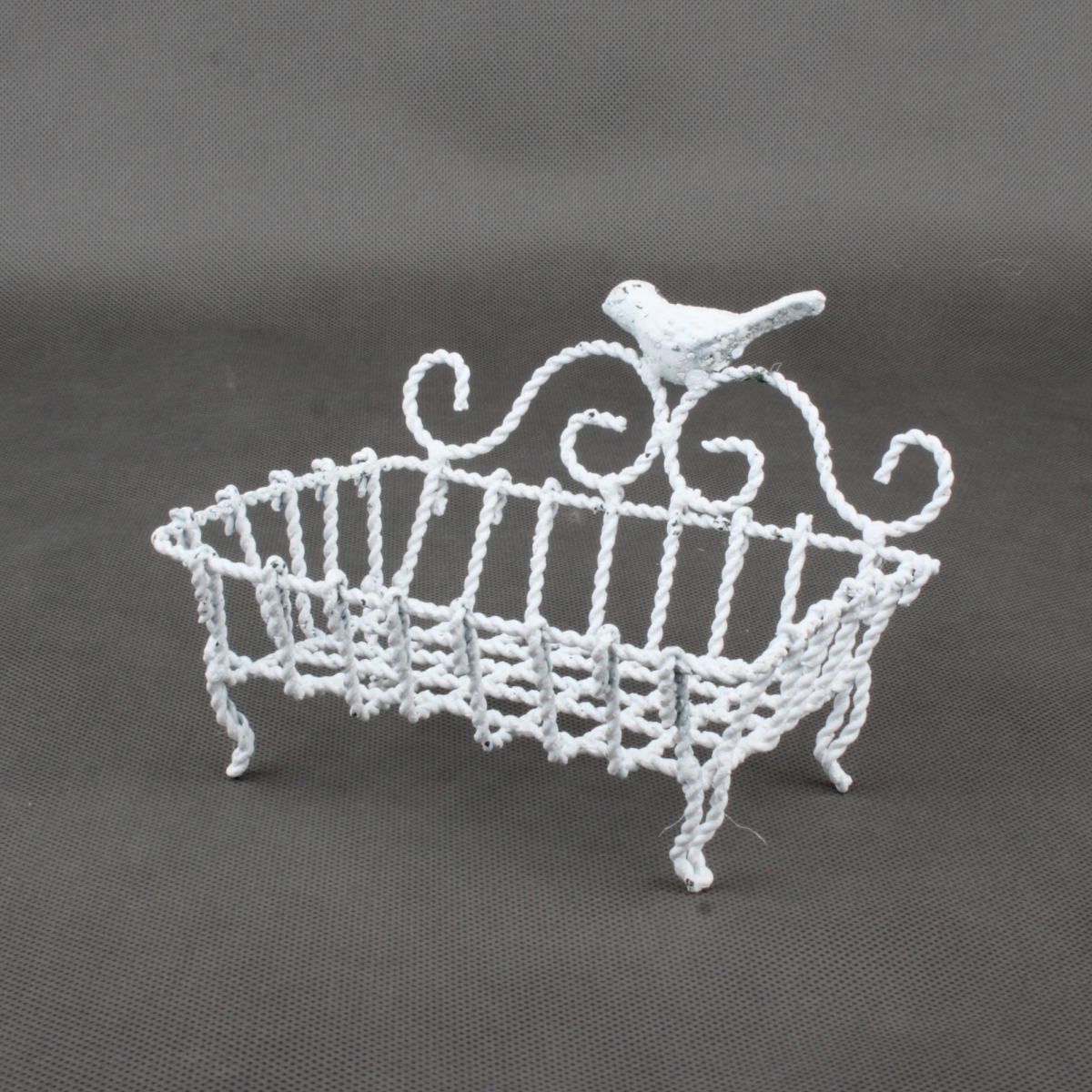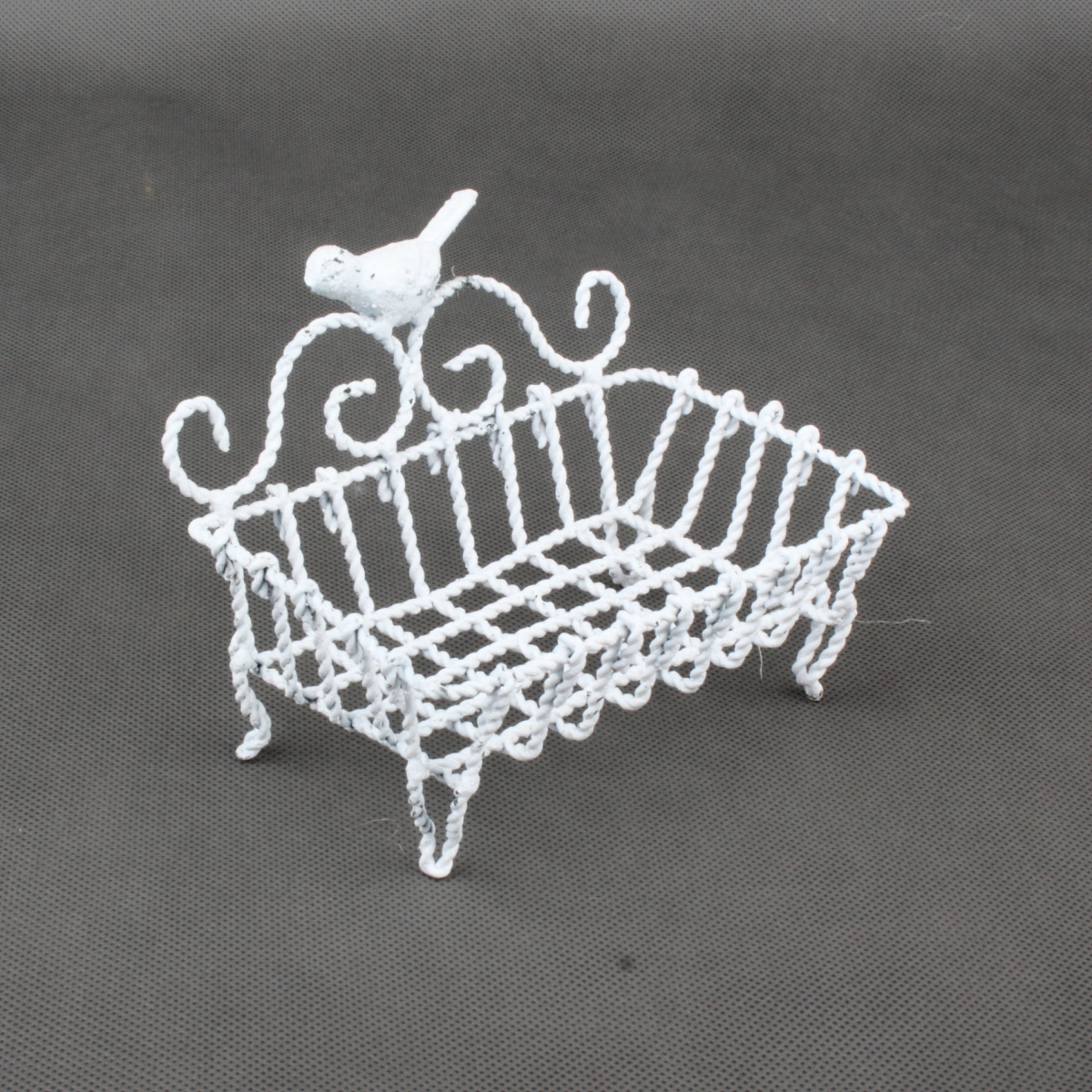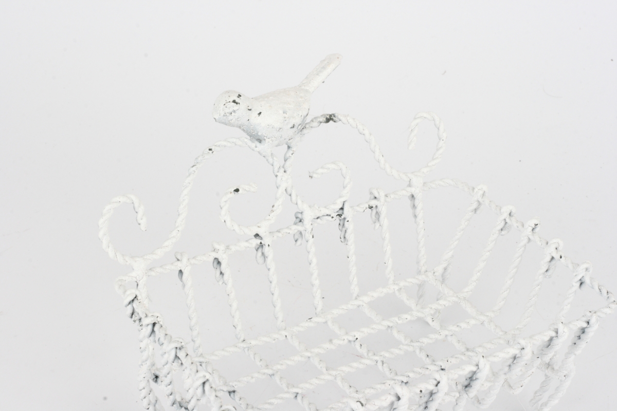 Kovová mydelnička biela s vtáčikom 14x11x10,5cm