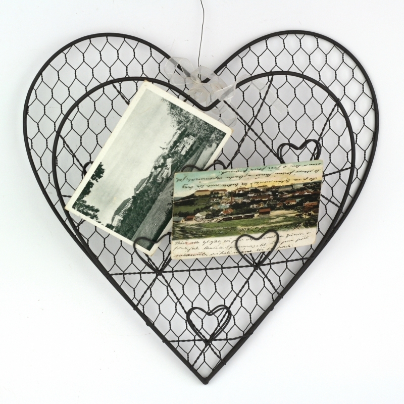 Kovová nástenka srdce na fotky a odkazy 33,5cm môže zdobiť stenu v predsieni a strážiť tak všetky vaše poklady. Či už novo prichádzajúcu poštu, pohľadnice, fotografie vašich blízkych alebo odkazy pre ostatných členov rodiny.