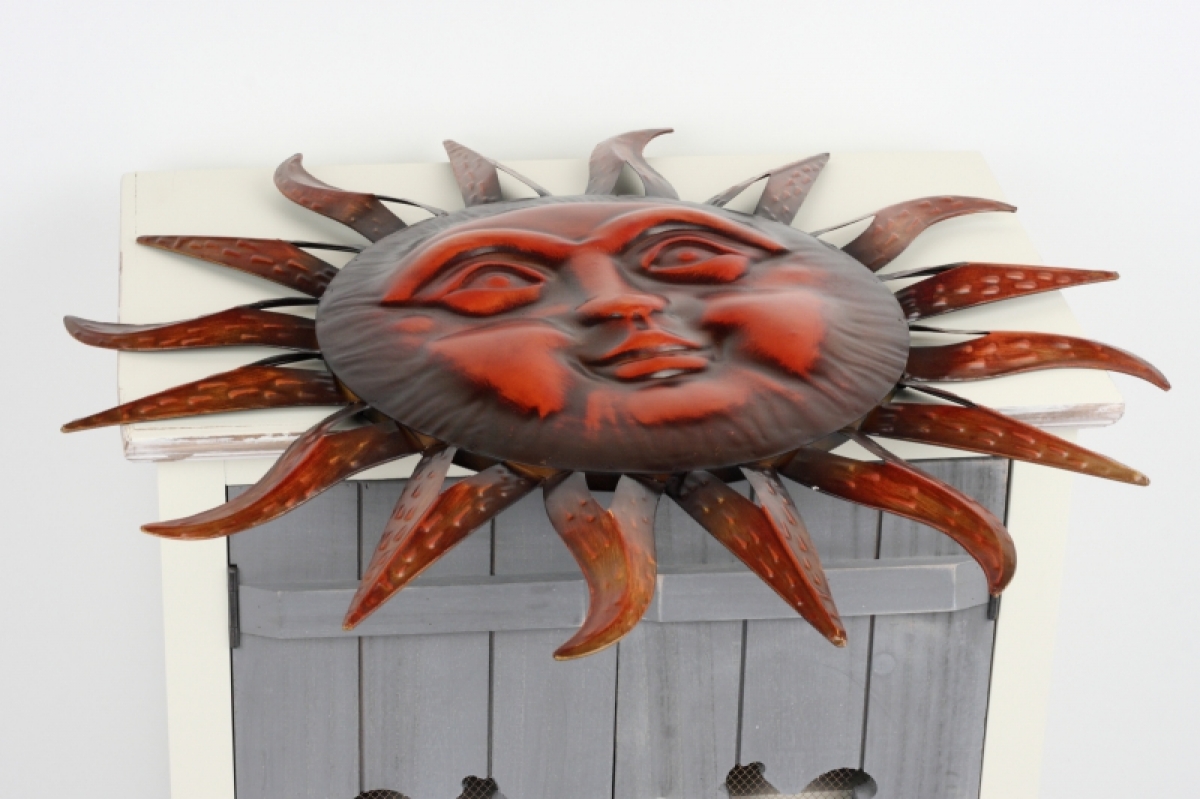 Nástenná dekorácia slnko tehlovej 62cm perfektne ozdobí prázdne steny interiéru, ale i napríklad fasádu domu alebo pergolu na terase.