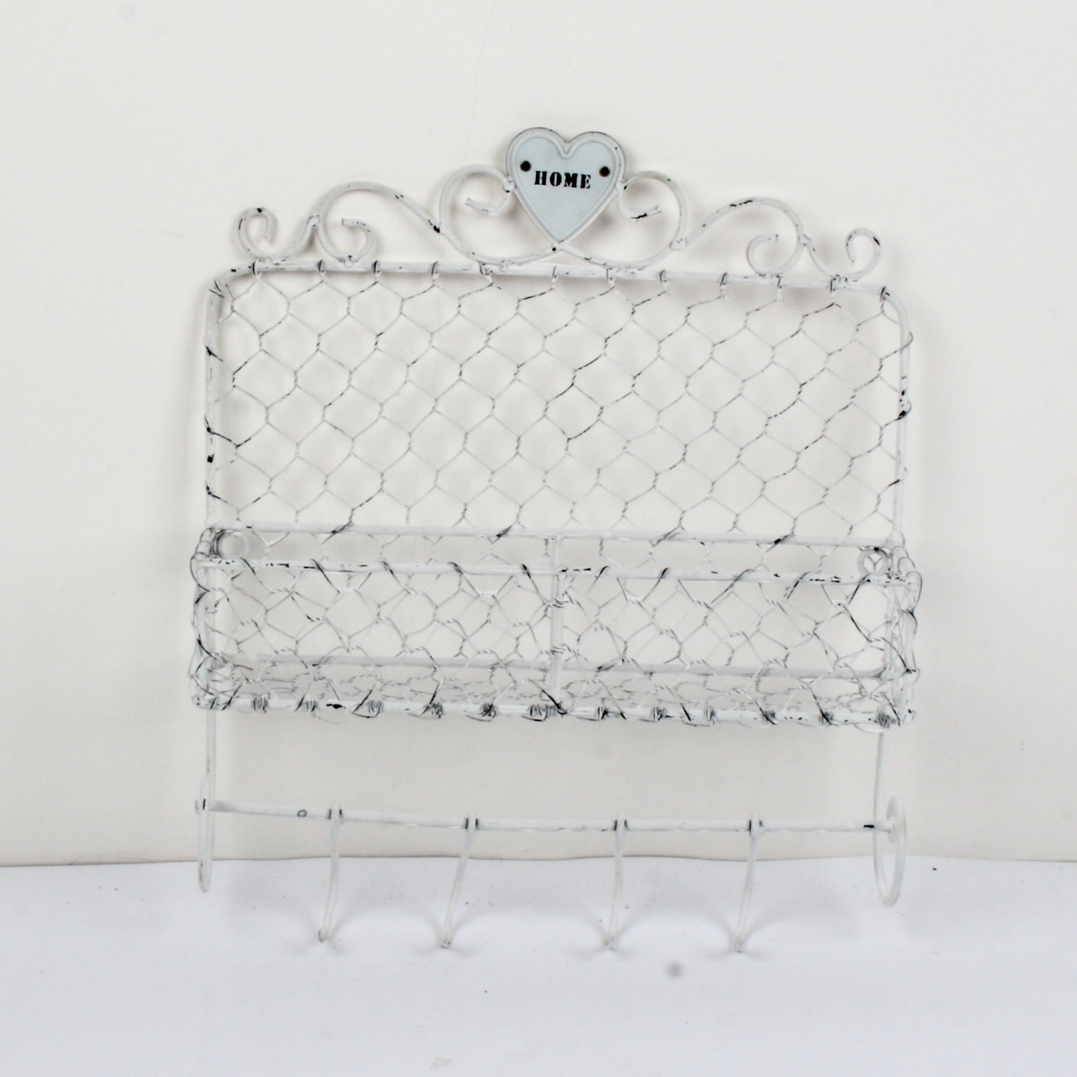 Kovová polička s háčikmi HOME 35,5x43cm na všetky drobnosti, ktoré doma máme. V kuchyni, kúpeľni alebo v predsieni ... všade určite nájde využitie.