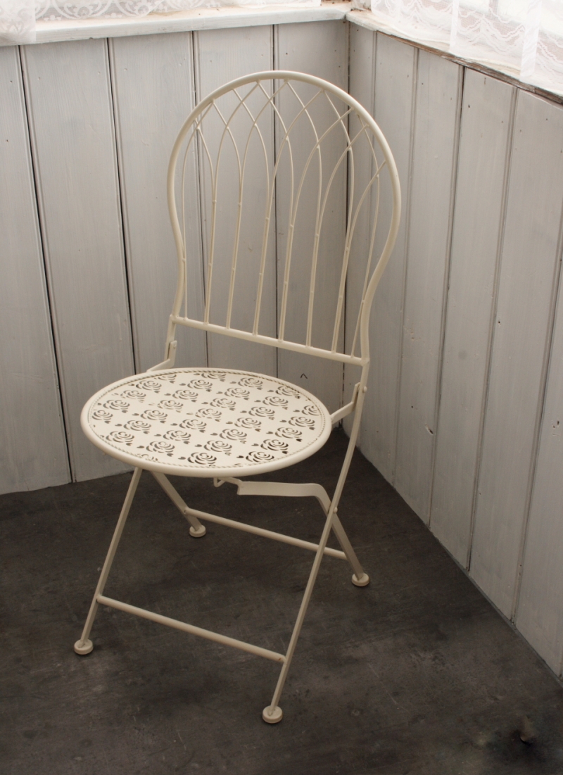 Sedák stoličky s motívmi ruží dodáva nábytku jemnosť a eleganciu. Je skladací a behom chvíľky z nej vytvoríte doslova placku, ktorá nezaberie žiadne miesto. V rovnakom dizajne je k stoličke v kategórii aj kovový stôl.