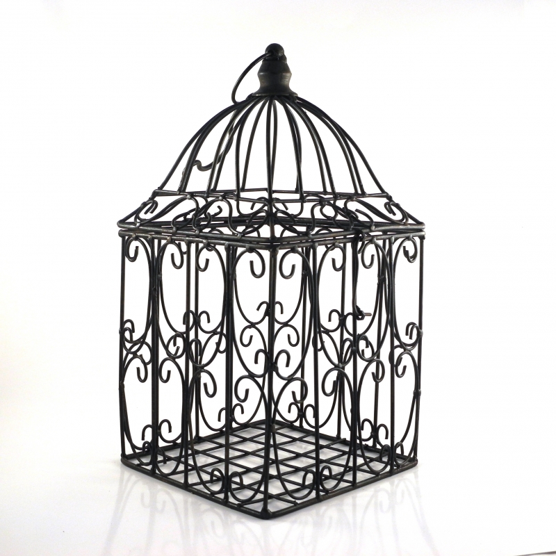 Kovová vtáčia klietka ako dekorácie 21x21x38cm