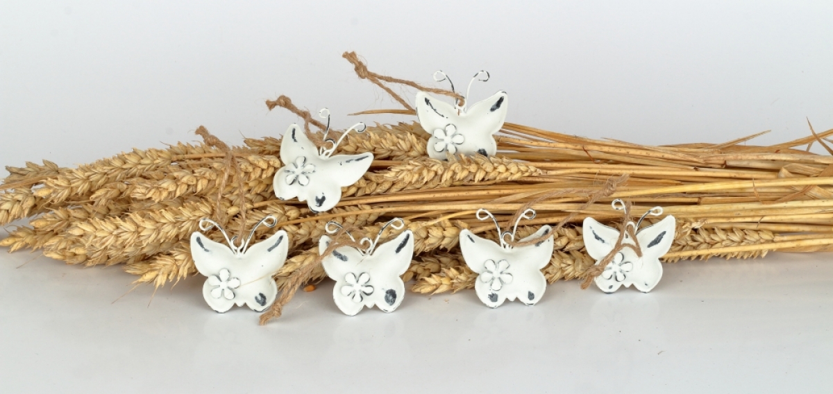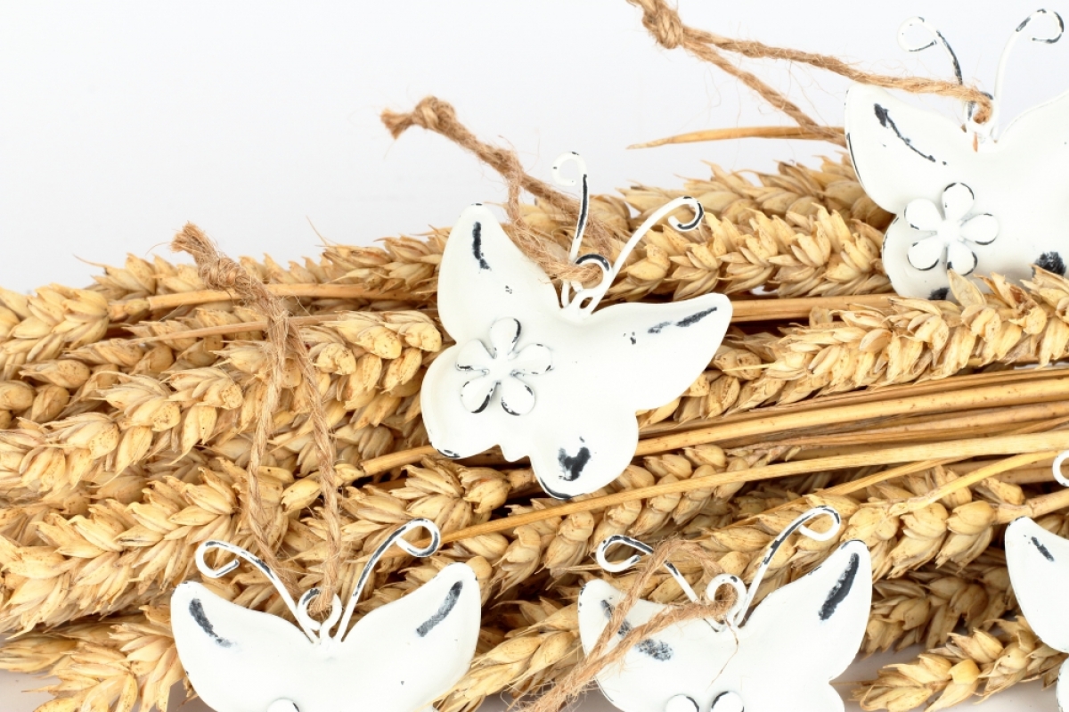Kovová závesná dekorácia motýľ 6ks 4,5×4,5×1,3cm na vetvičky vo váze alebo ako doplnok sezónneho aranžmá. Motýľ má vnútri rolničku.