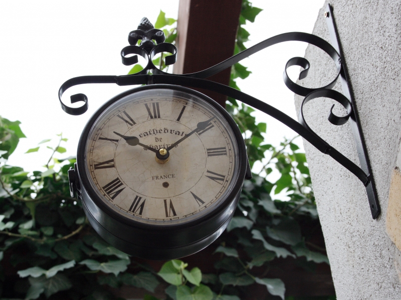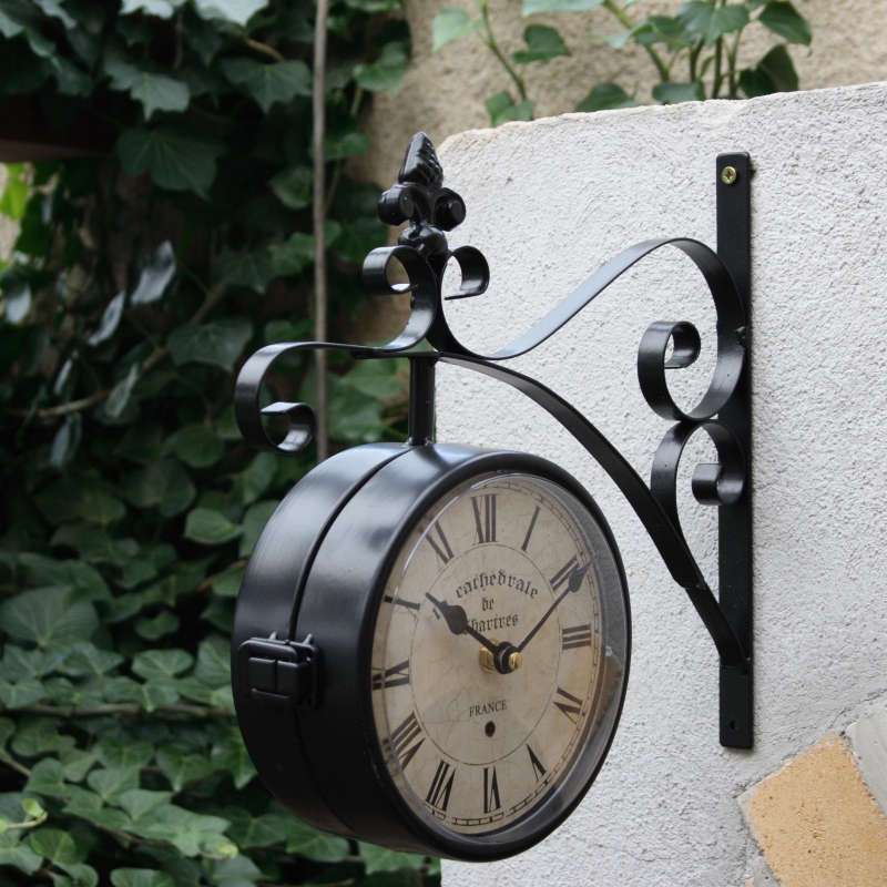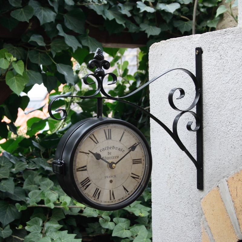 Venkovní hodiny vhodné pro umístění pod zastřešenou pergolu. Oboustranné hodiny pohání dva nezávislé hodinové strojky Quartz. Ciferník má průměr 17cm a je chráněn krytem z plexiskla. Hloubka ciferníku je 8cm.