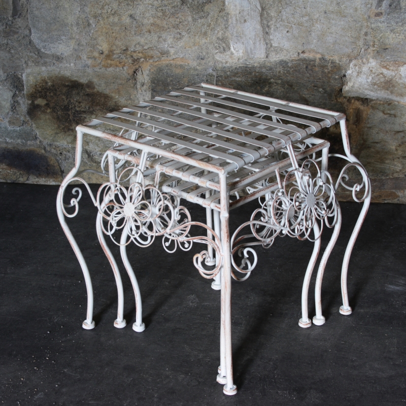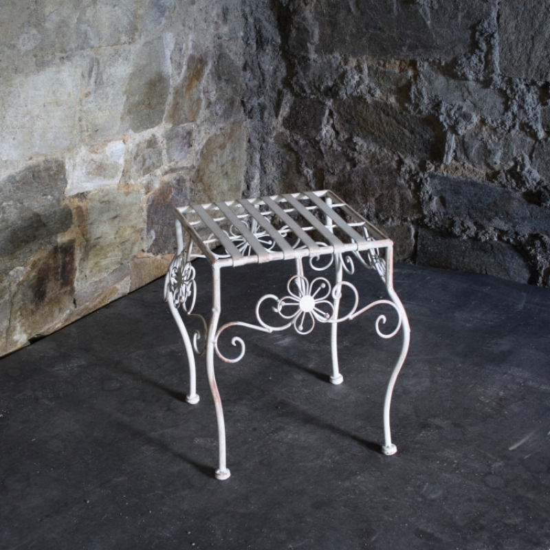 Drobný kovový nábytok s bohatým zdobením v bielej farbe s patinou je prekrásnym doplnkom do romanticky ladeným interiérov vo vidieckom štýle.