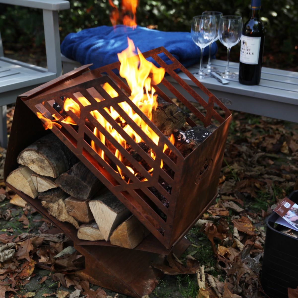 Kovové ohnisko so zásobníkom hrdzavé
