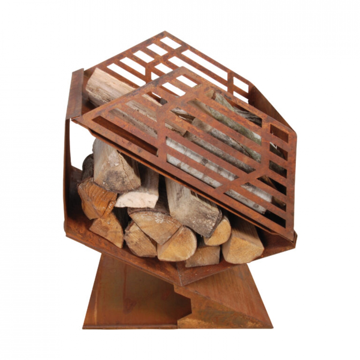 Kovové ohnisko na podstavci má v spodnej časti zásobník na drevo, v hornej časti priestor na podpaľovanie dreva chránený z 3 strán tak, aby horiace drevo nevypadávali von.