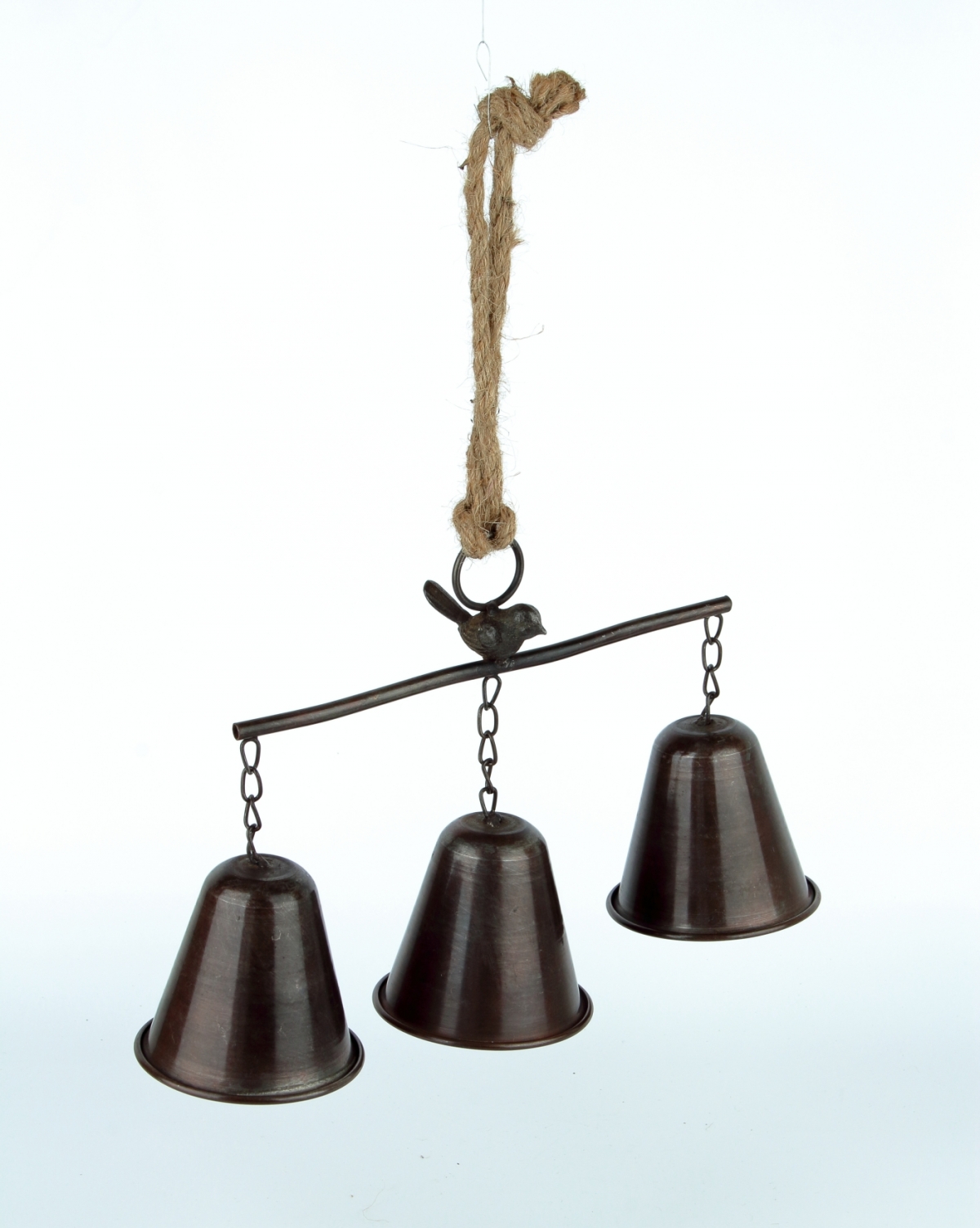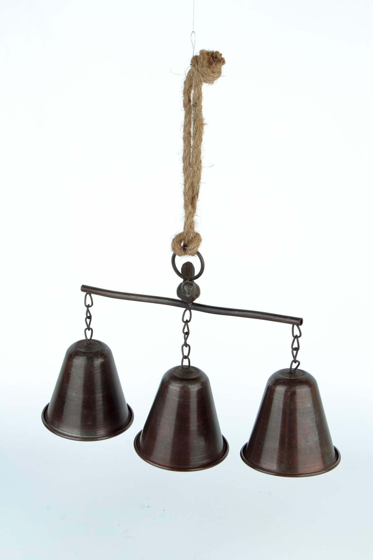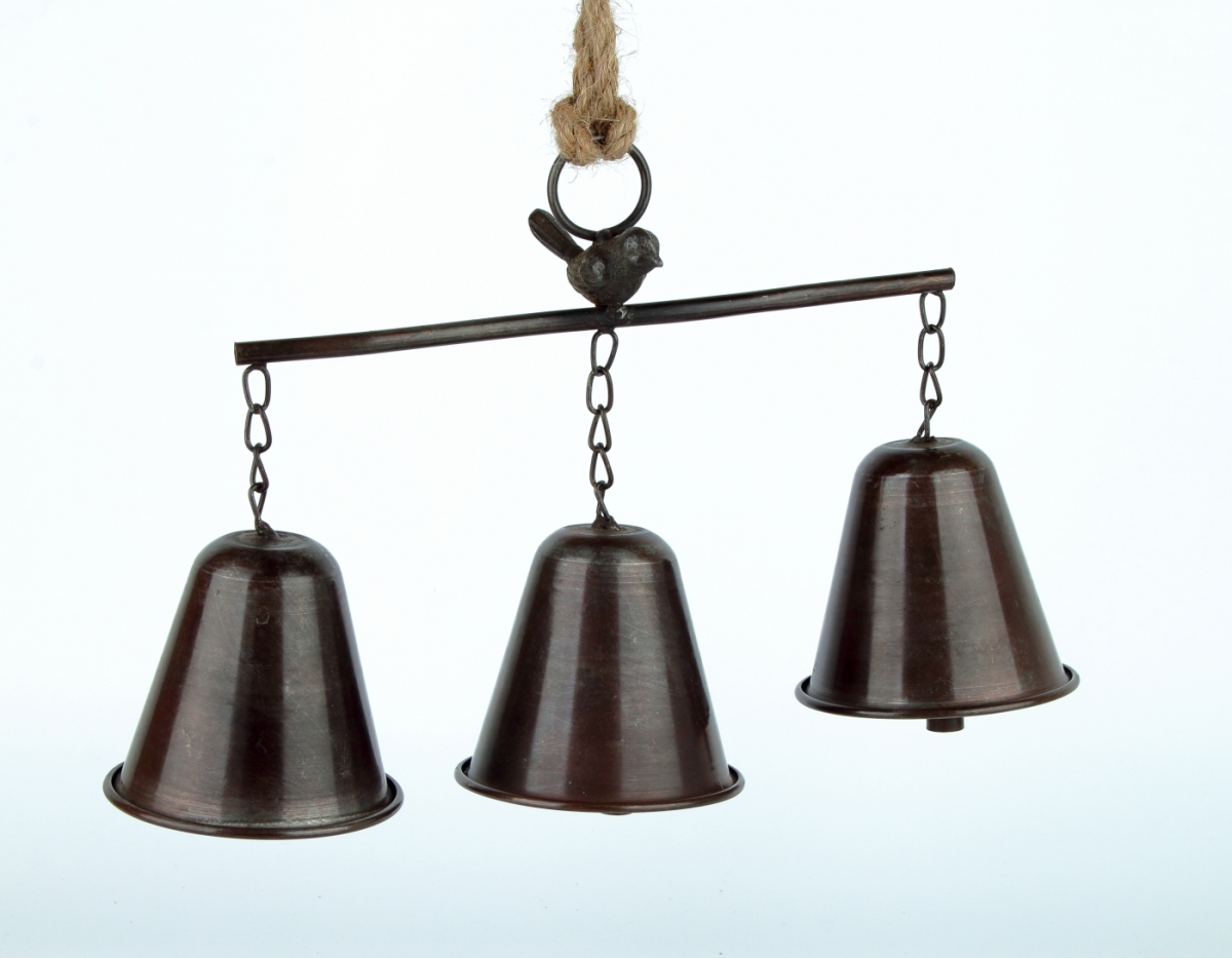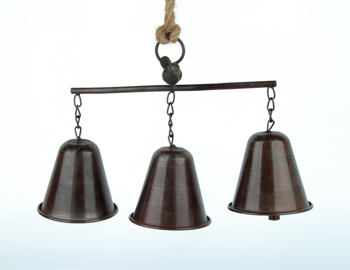Tri kovové zvončeky na konzolke môžete zavesiť ku dverám alebo na stenu. Vo vianočnom čase budú tiež nádhernú vianočnou dekoráciou, napríklad na dverách.