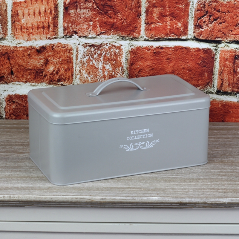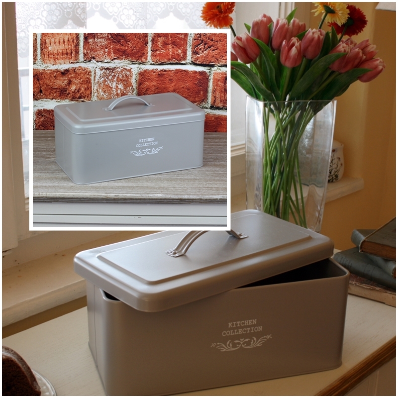 Chlebník je plechový, má praktický úchyt na veku a má krásnu šedivú farbu. Šedá farba je veľmi univerzálny a nemusíte sa tak báť, že by Vám chlebník v inteiréru "neladila".
