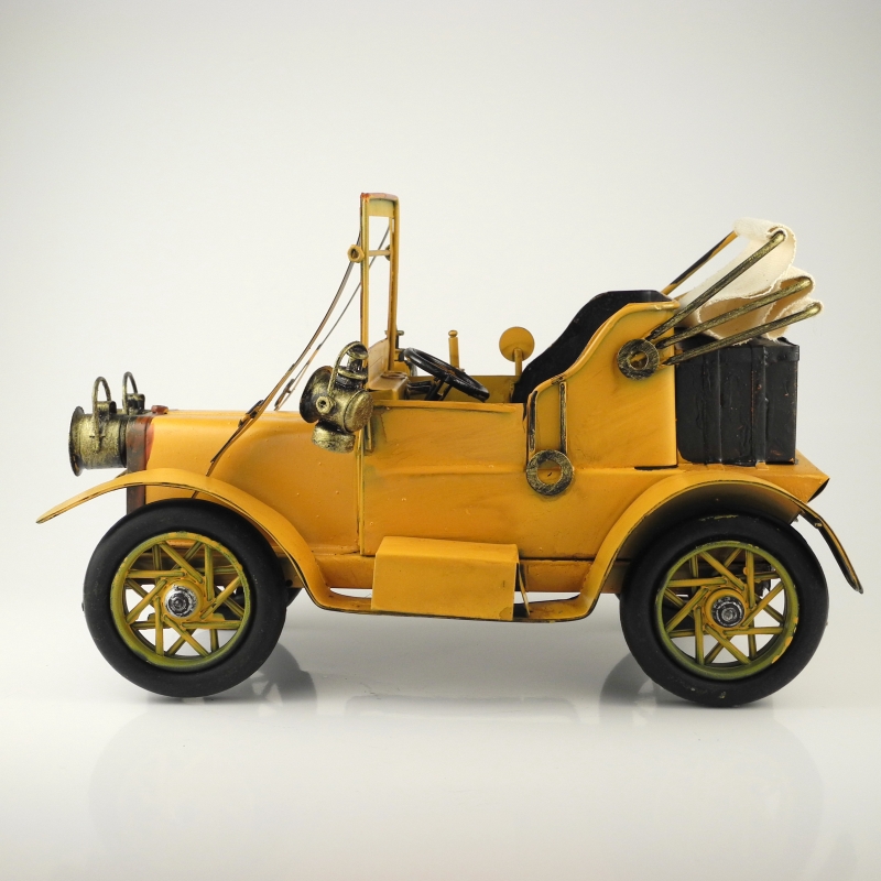 Celý retro model je vyroben z plechu a kovových částí. Pneumatiky jsou vyrobeny z pryže.