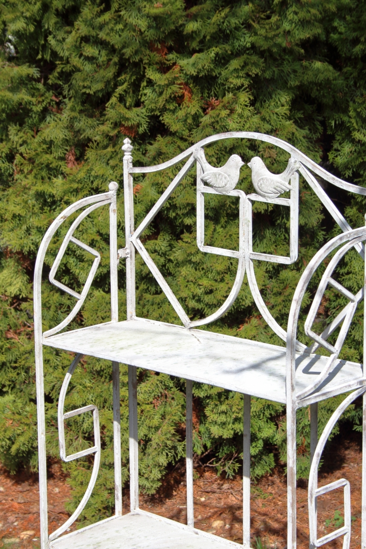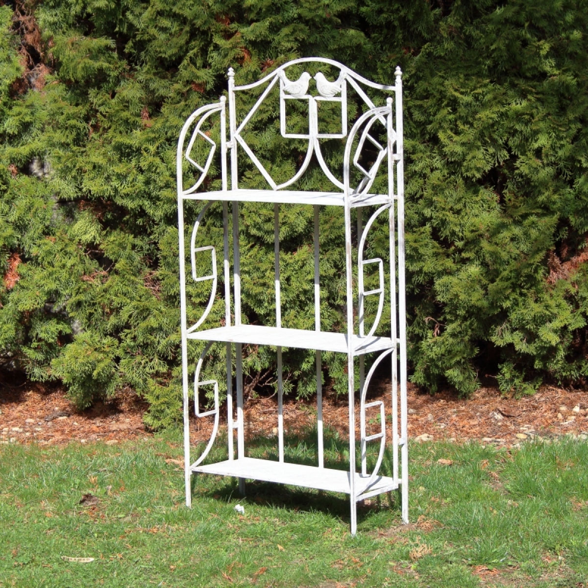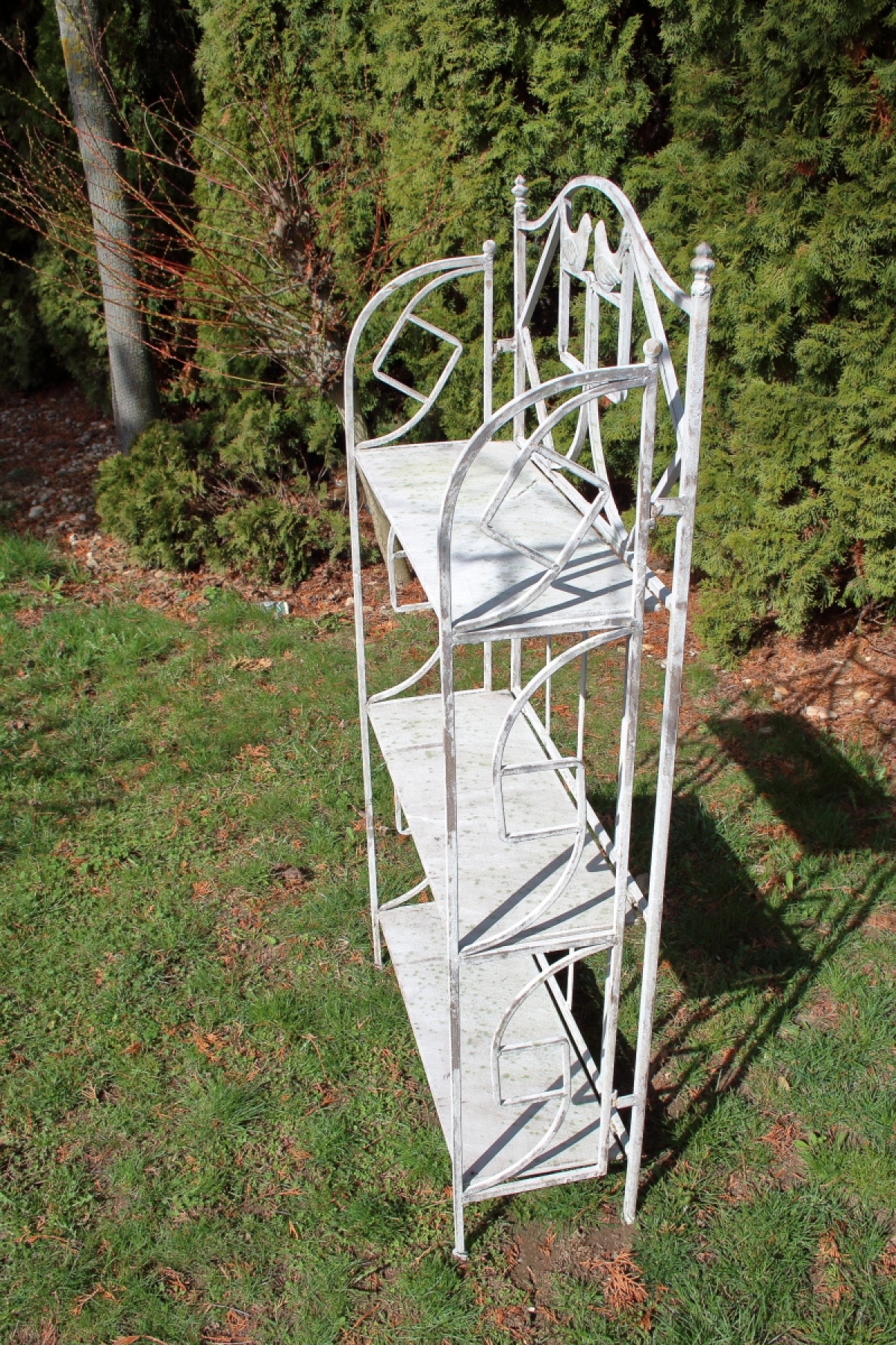 Krásny dekoratívne kovový regál bude ozdobou vašej záhrady, prípadne i bytu. Kovový regál je krásne zdobený ornamentmi a bude úžasnú dekorácií. Navyše je veľmi praktický - má 3 poličky, na ktoré môžete umiestniť kvetináče, knižky alebo darčekové predmety.
