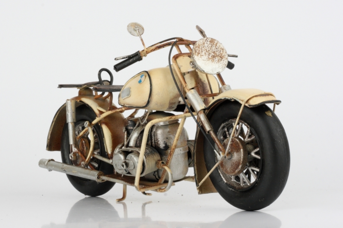Kovový retro model motorka béžová 31cm