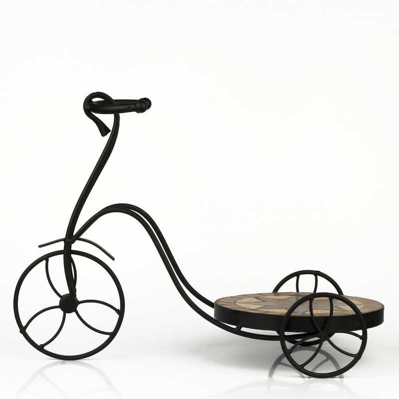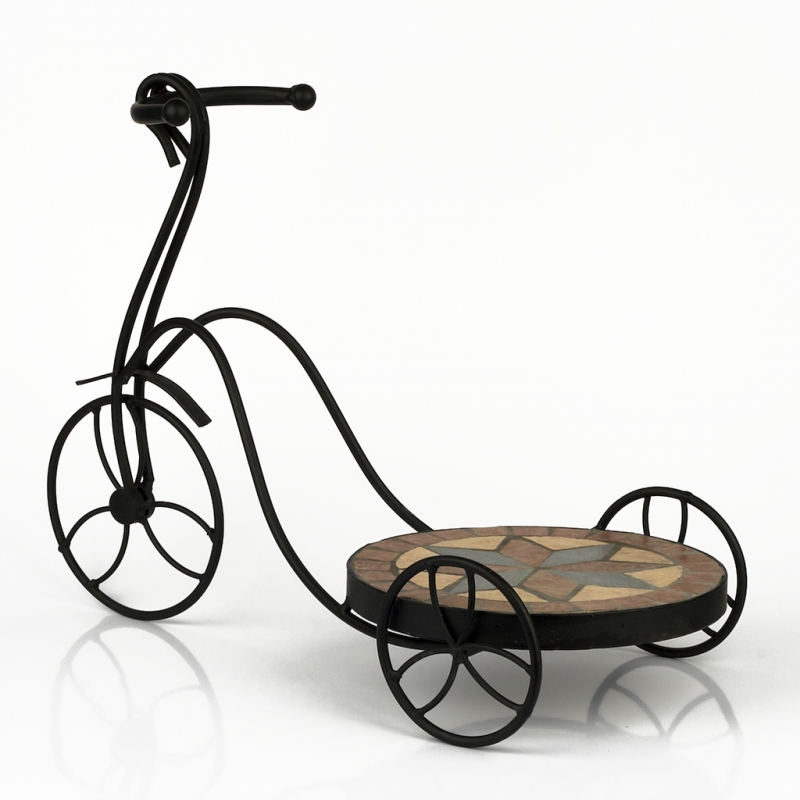 Kovový stojan na kvety trojkolka délka 44cm, šířka 21cm, výška řídítek 31,5cm.