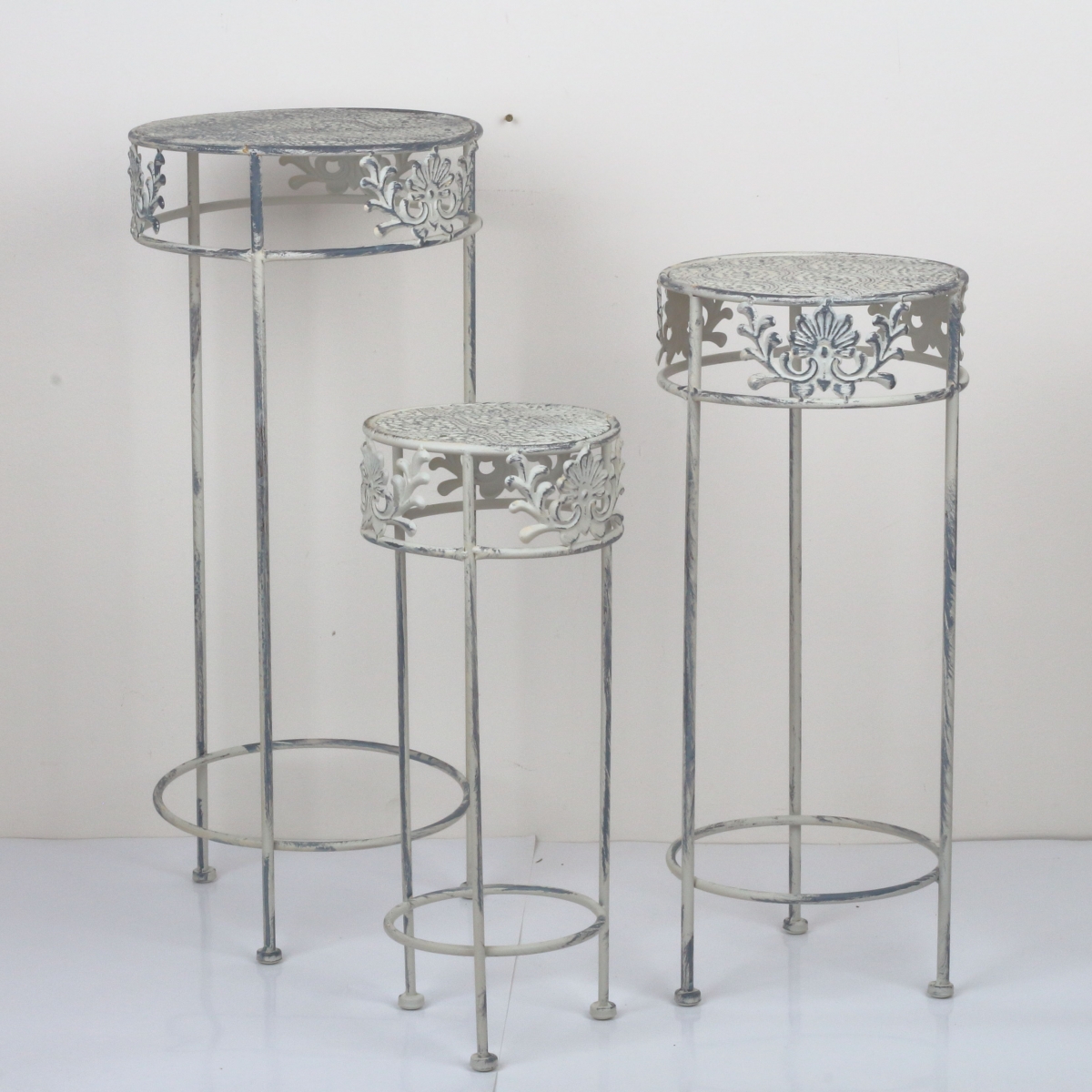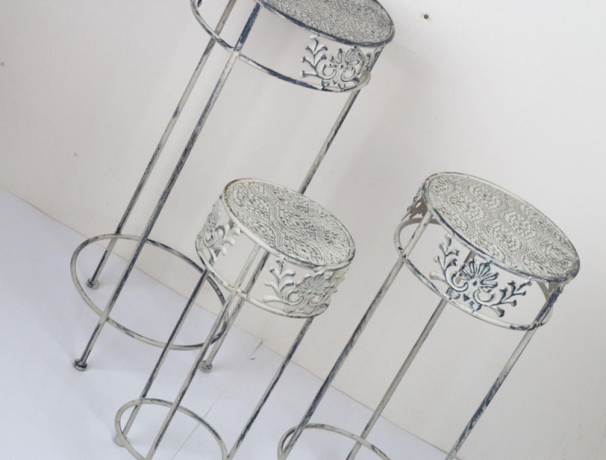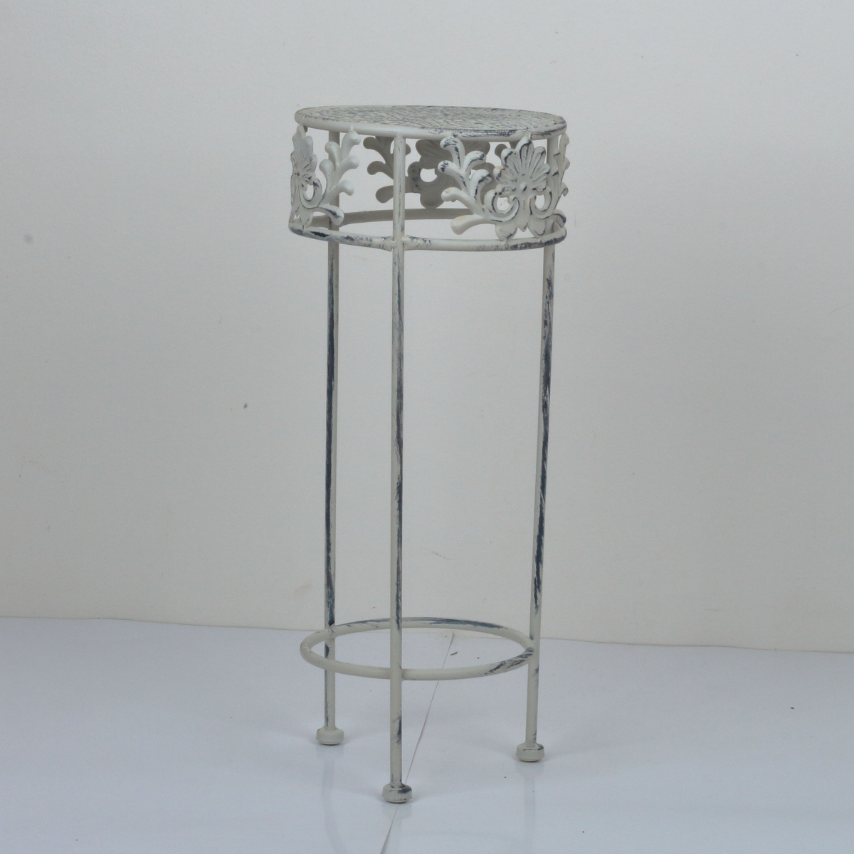 Kovový stojan na kvety 60cm vysoký, pre všetky romantické duše. Stojan je krásne zdobený s bielou patinou. Umíme si predstaviť v obývacej izbe, balkóne ale aj v spálne.