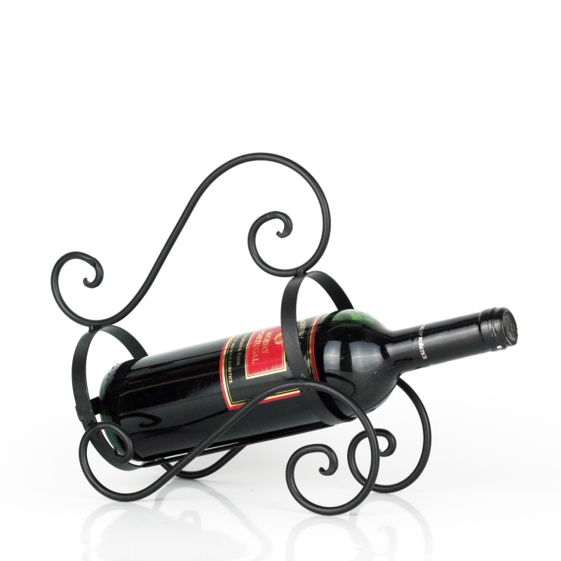 Táto malá "vinotéka" má otvor na jednu fľašu vína, nohy a vrchná madlo má vyrobené z guľatiny zohýbané do jednoduchého ornamentu.