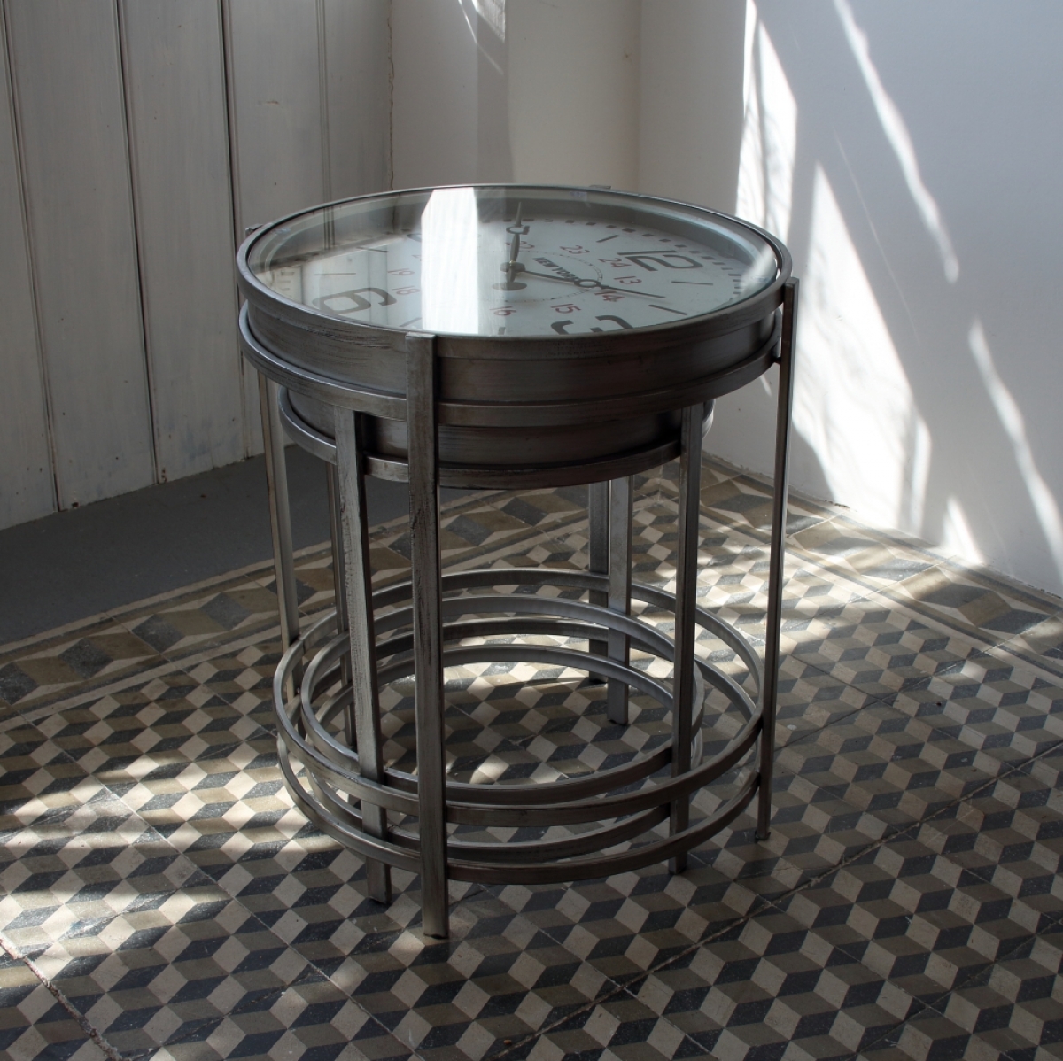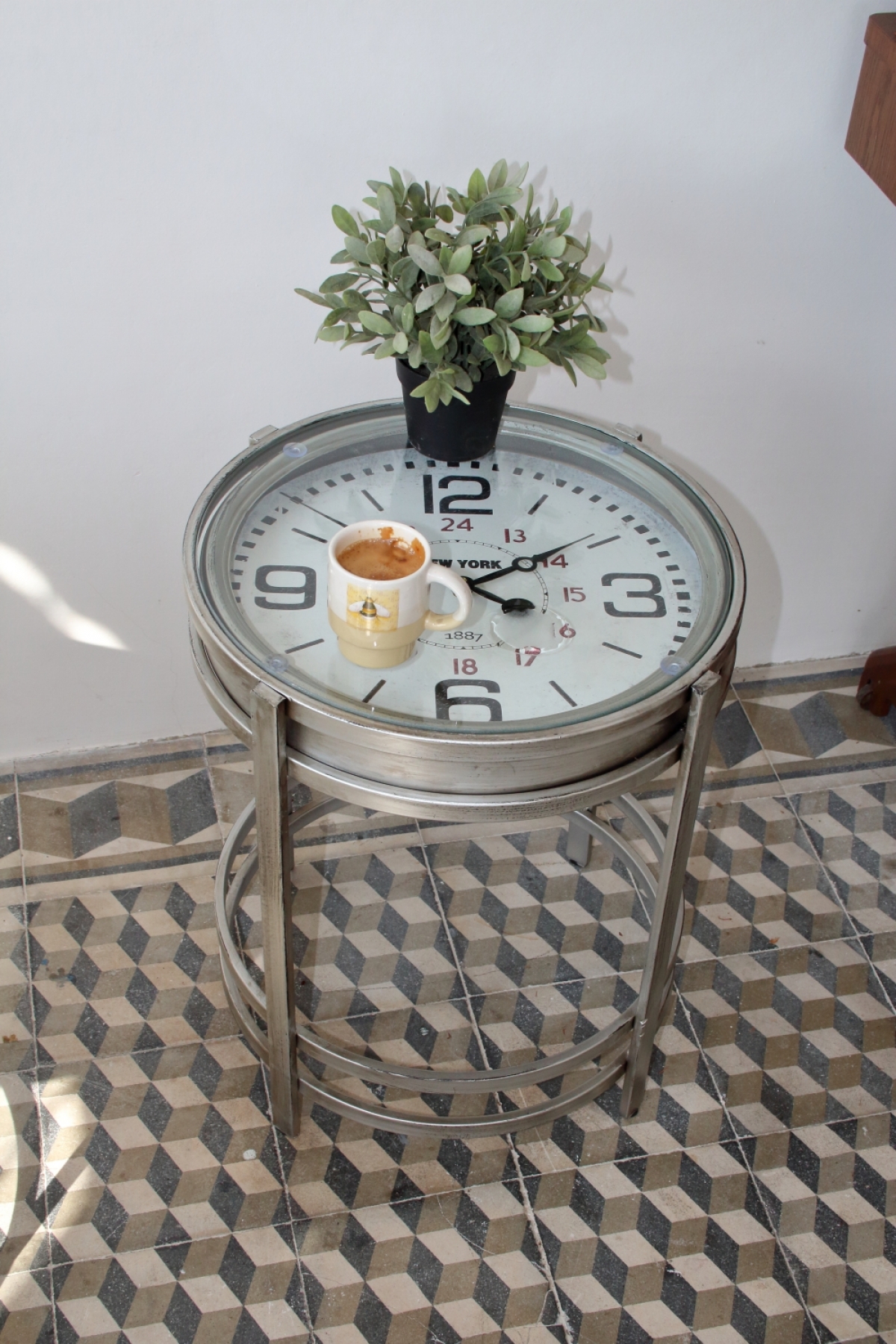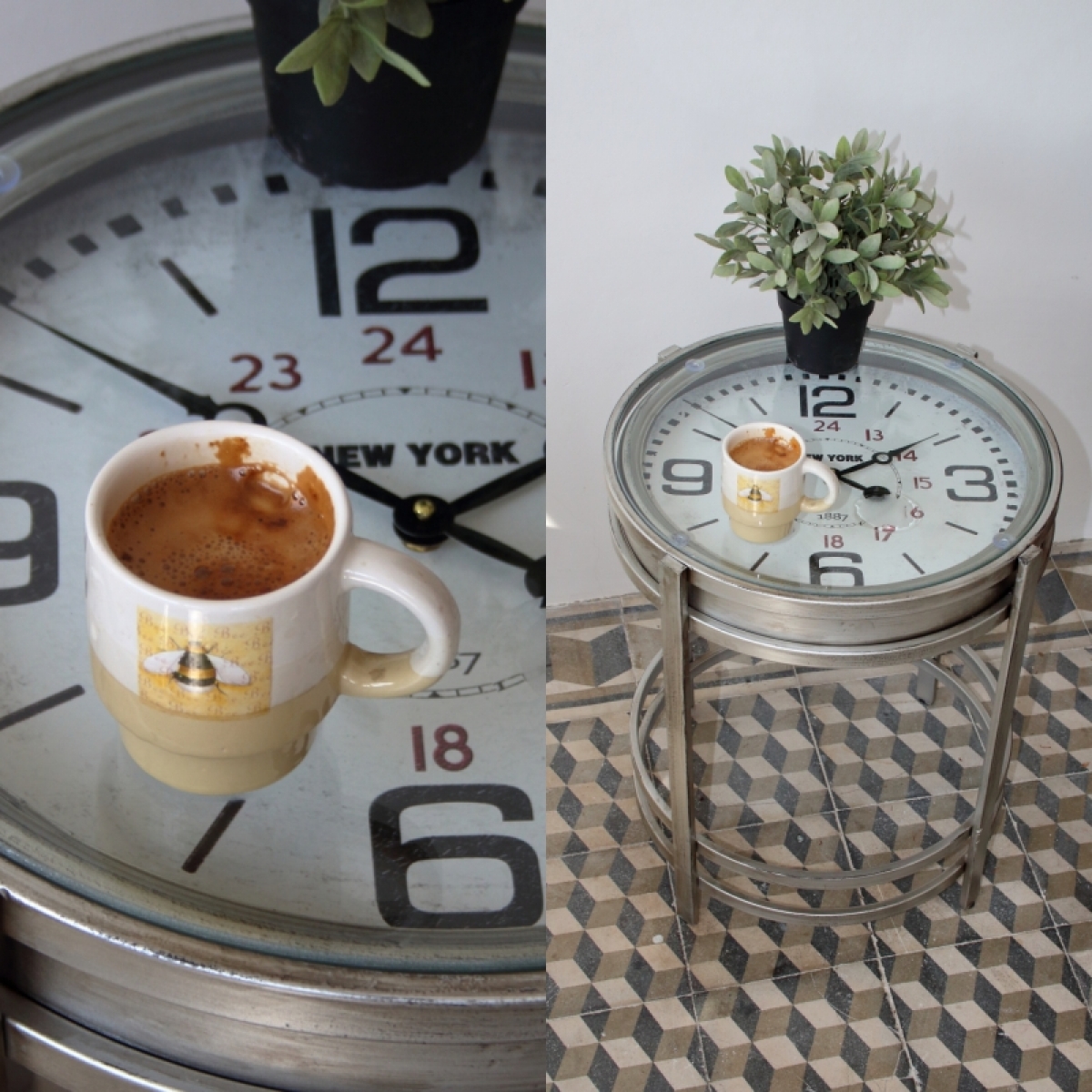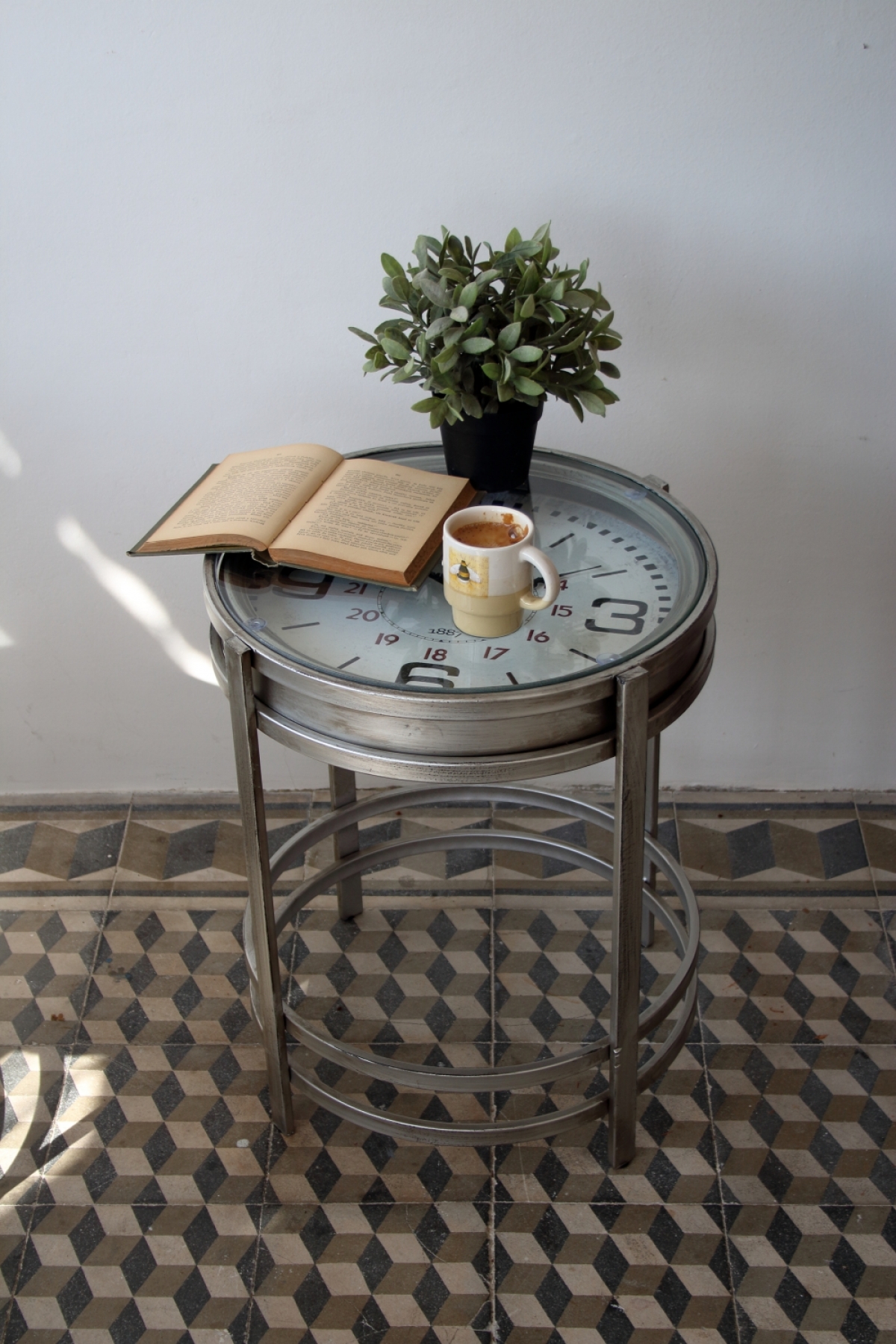 Kovový stôl - hodiny 42,4×54,2×42,4cm slúži ako praktický konferenčný stolík. Pohodlne sa posaďte do kresla, zapáľte sviečku a popíjajte kávu u čítanie knihy.