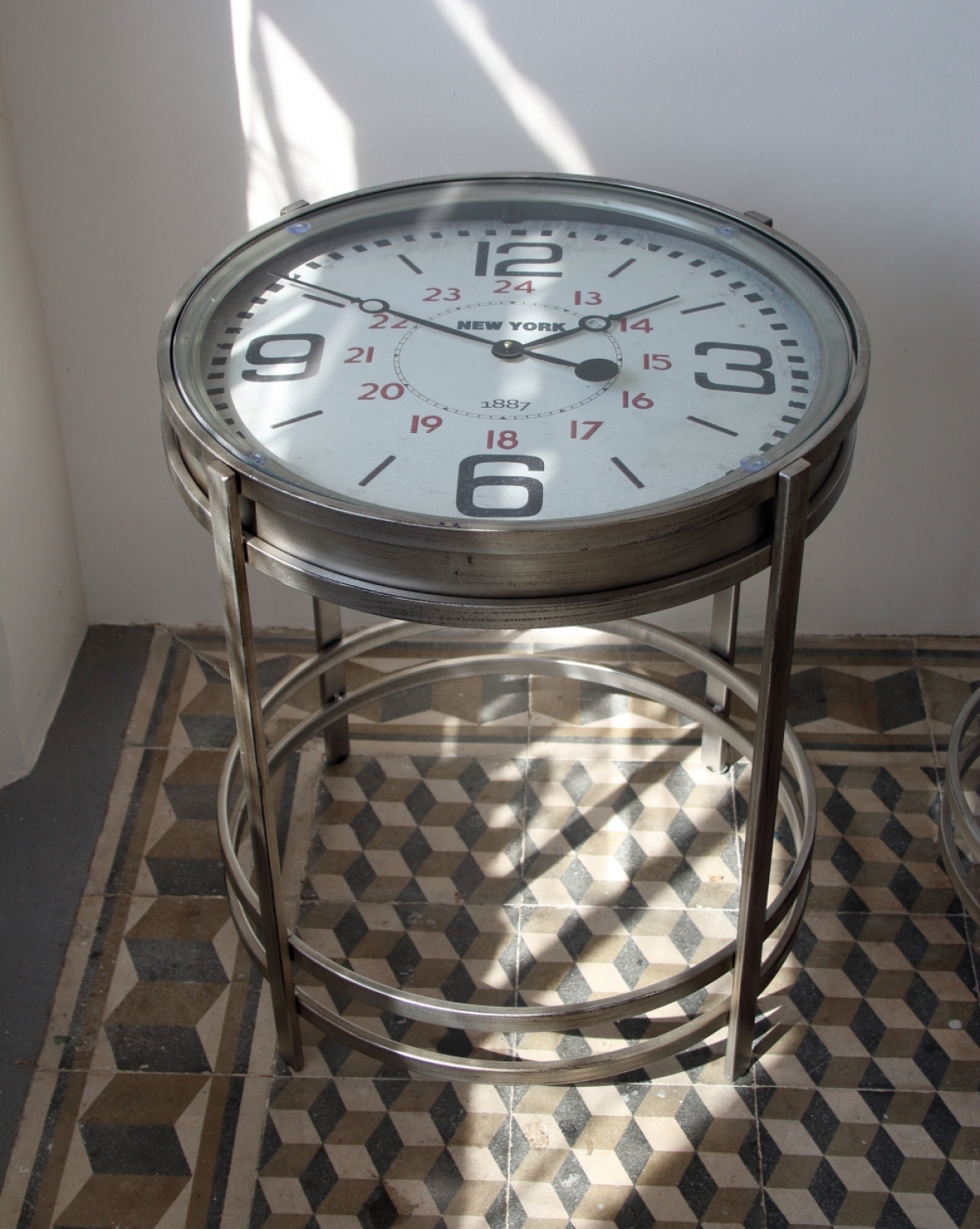 Kovový stôl - hodiny 42,4×54,2×42,4cm