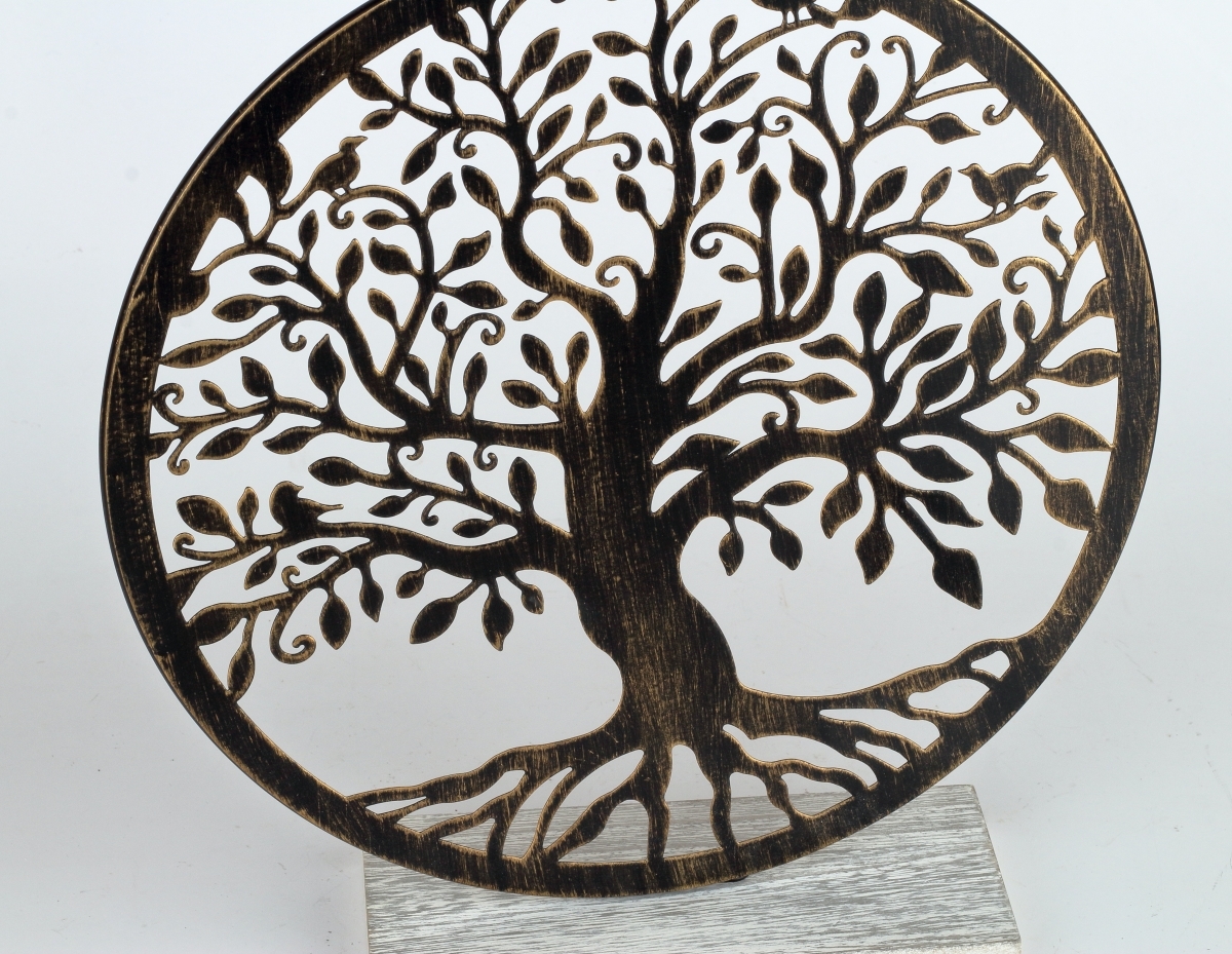 Kovový strom života na drevenej podeste. Dekorácia, ktorá je ideálna pre ezoterických záujemcov. Tento kovový strom života môže byť umiestnený na parapete, alebo na stolíku, a prinesie do vášho domova pozitívnu energiu a prírodnú atmosféru. Naše produkty odhalia príbeh prírody a prinesú pozitívnu energiu do interiéru.