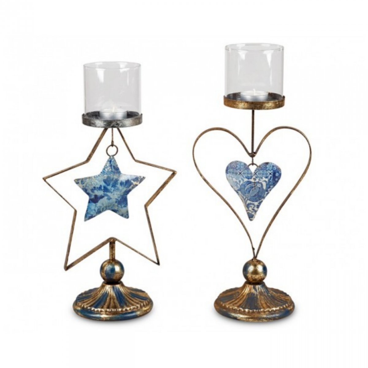 Kovový svietnik v sade dvoch kusov, na celoročné využitie. V období Vianoc a predvianočnom období bude dominantou miestnosti kovový svietnik s vianočnou hviezdou. Napriek tomu môžete súčasne rozsvätiť aj kovový svietnik so srdcom, plným lásky.