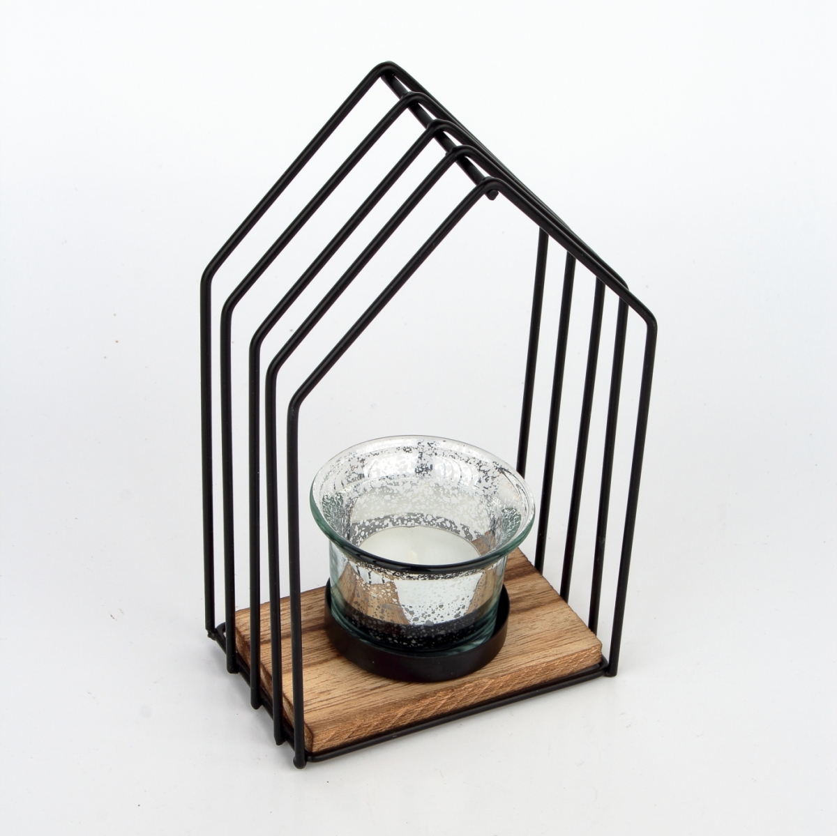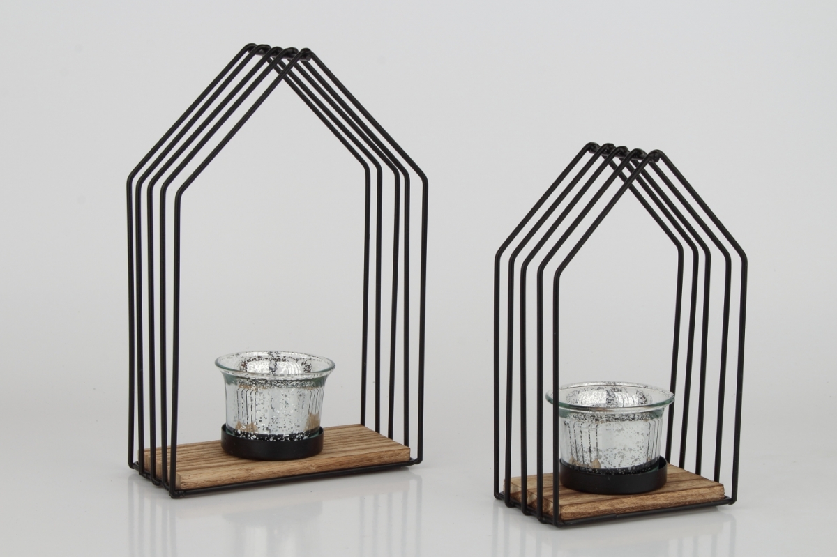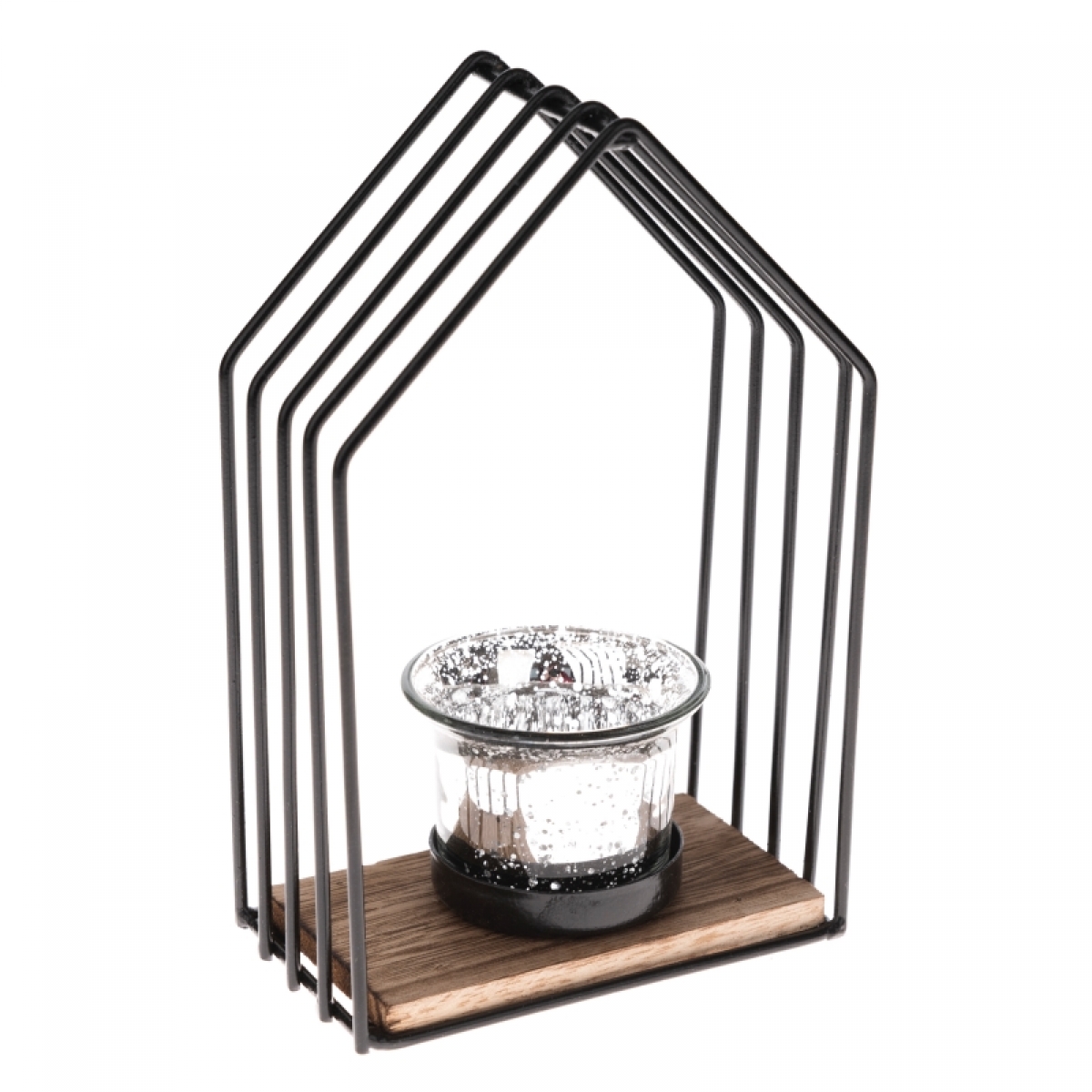 Ak sledujete trendy v nábytku a bytových doplnkoch, určite vám neunikol hit posledných rokov - kombinácia prírodného dreva a čierneho kovu. Veľmi pekná kombinácia, ktorá nemusí zostať len pri nábytku, ale dá sa aplikovať aj na menšie doplnky, ako je potrebné tento krásny kovový svietnik v tvare striešky.