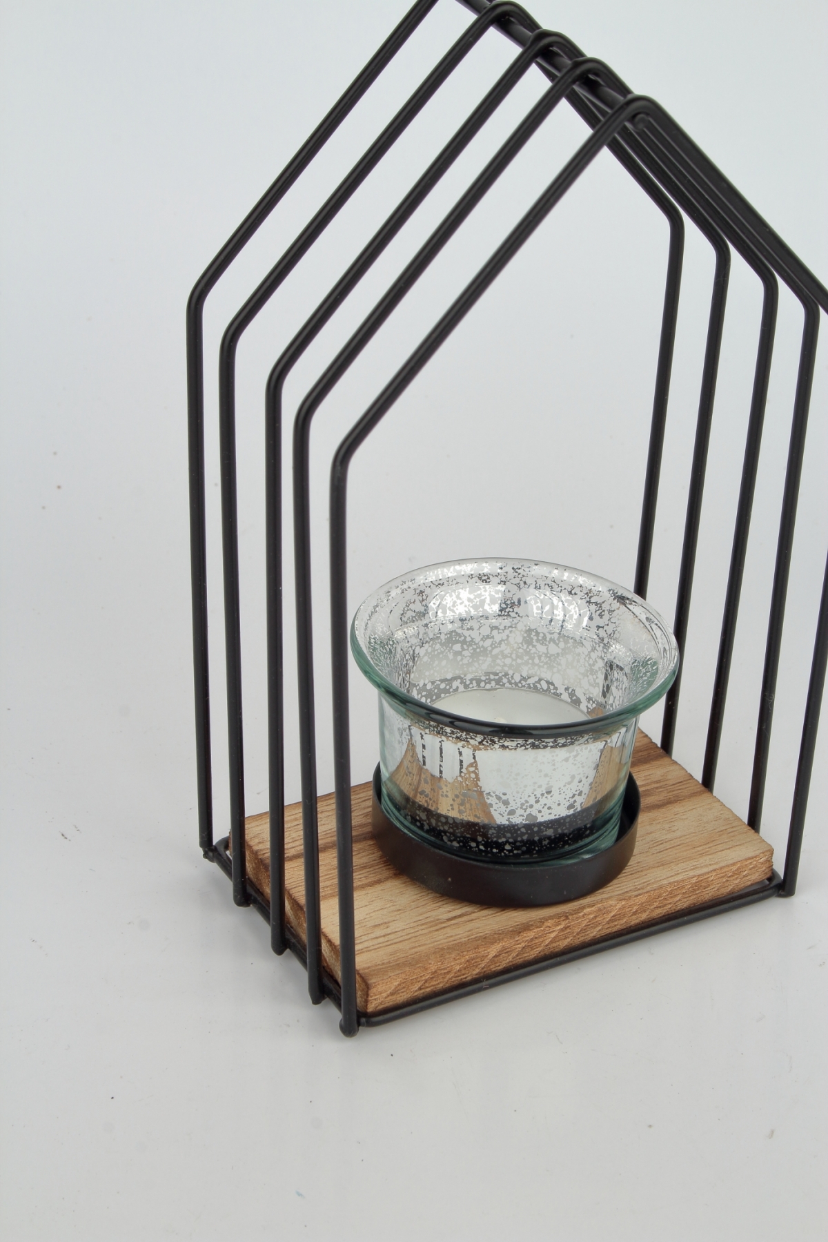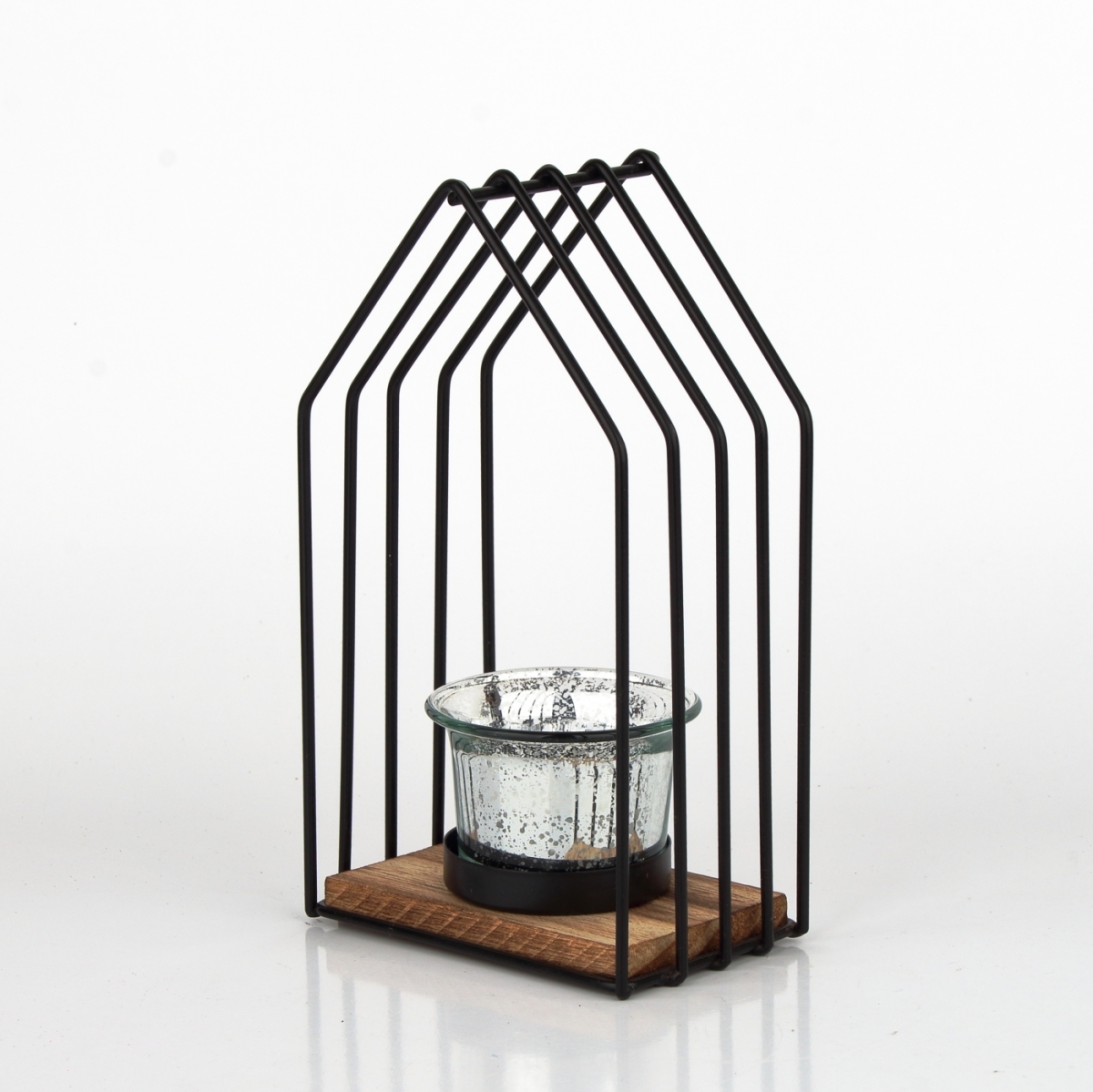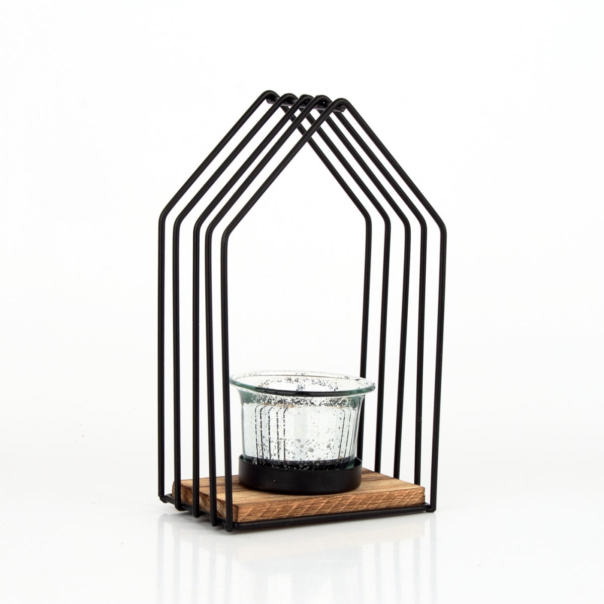 Ak sledujete trendy v nábytku a bytových doplnkoch, určite vám neunikol hit posledných rokov - kombinácia prírodného dreva a čierneho kovu. Veľmi pekná kombinácia, ktorá nemusí zostať len pri nábytku, ale dá sa aplikovať aj na menšie doplnky, ako je potrebné tento krásny kovový svietnik v tvare striešky.