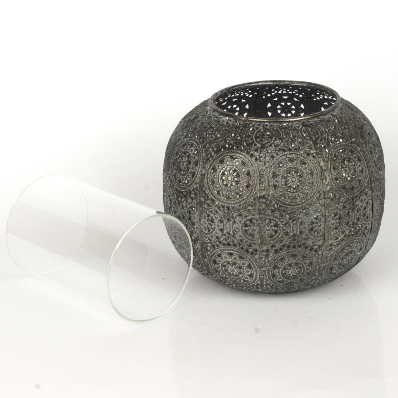 Kovový svietnik guľa 16,5cm má netypický čipkovaný vzhľad a na prvý pohľad na nás dýchne vôňou orientu.