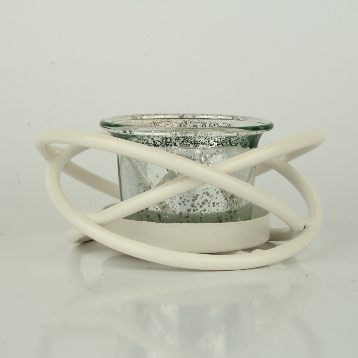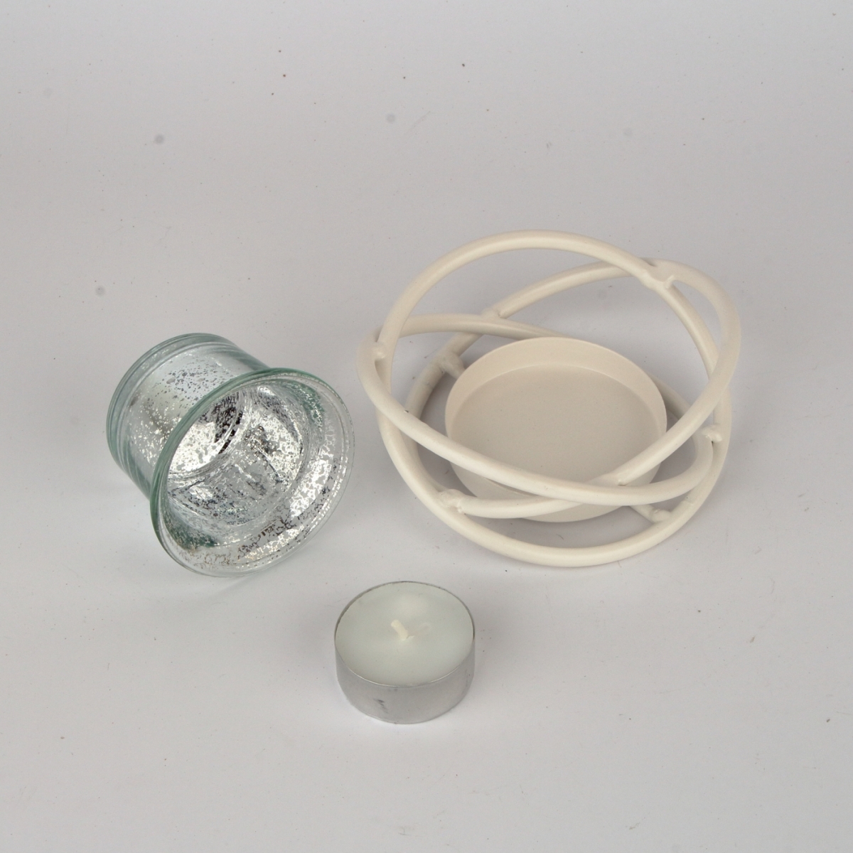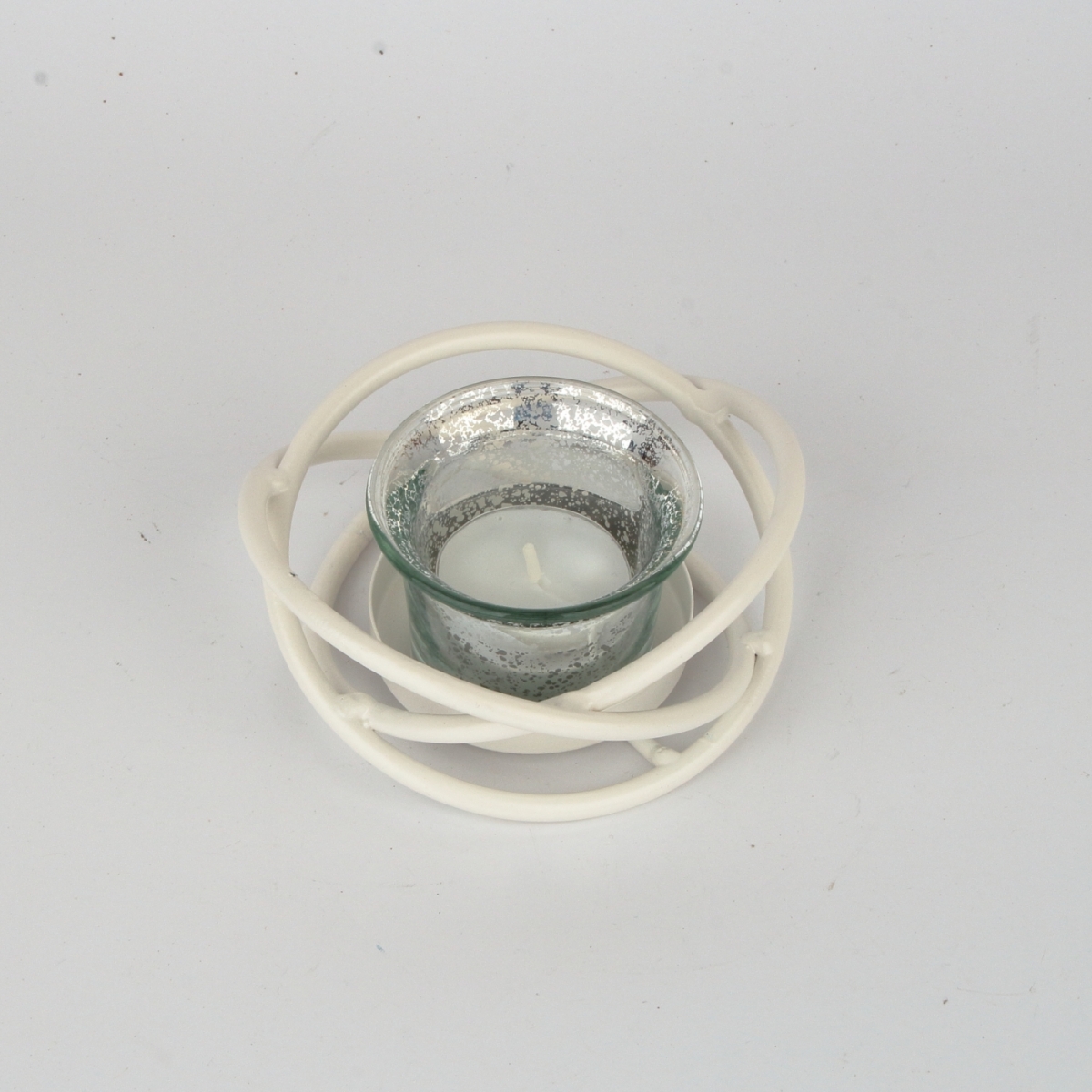 Kovový svietnik na 1 čajovú sviečku v bielom kovovom prevedení