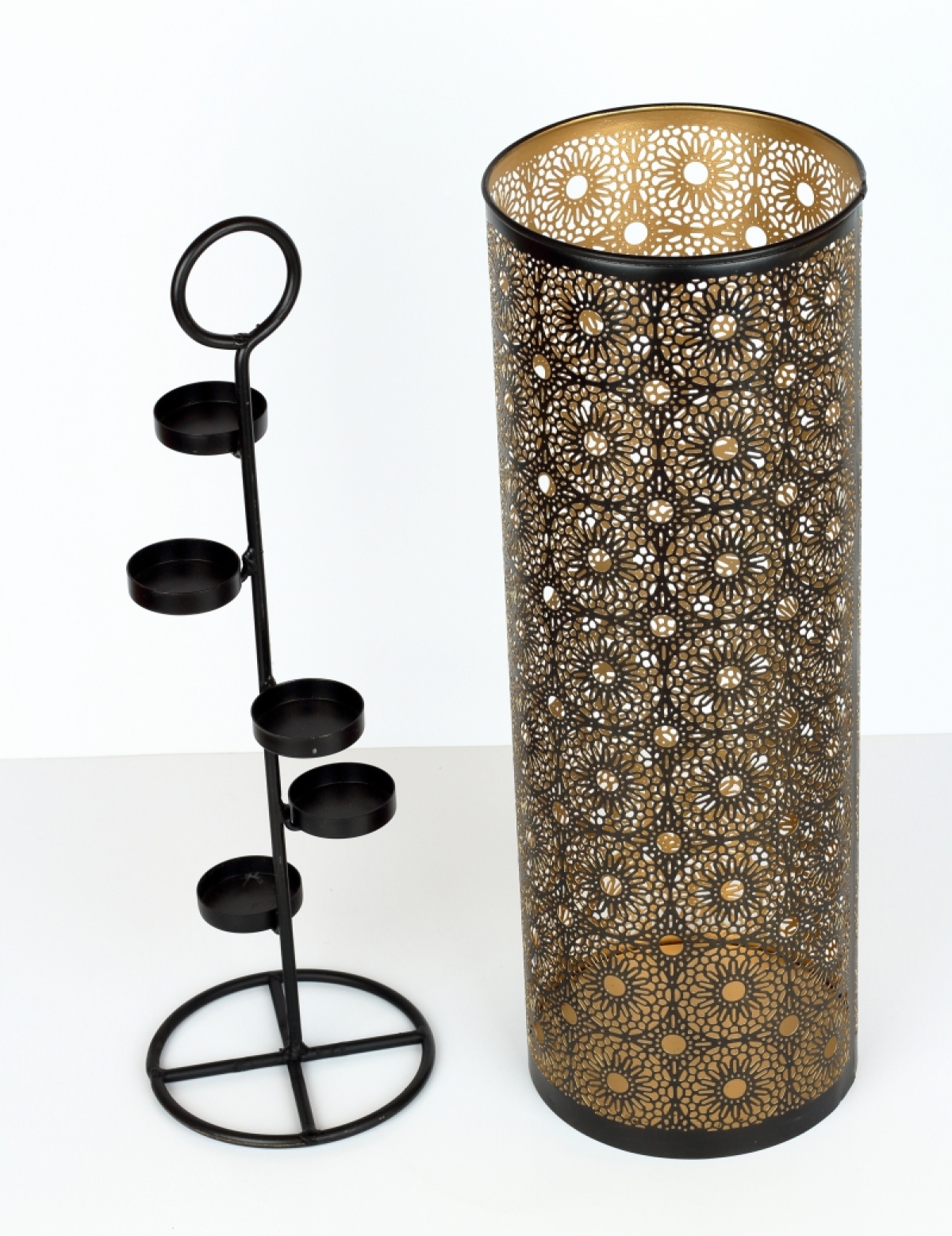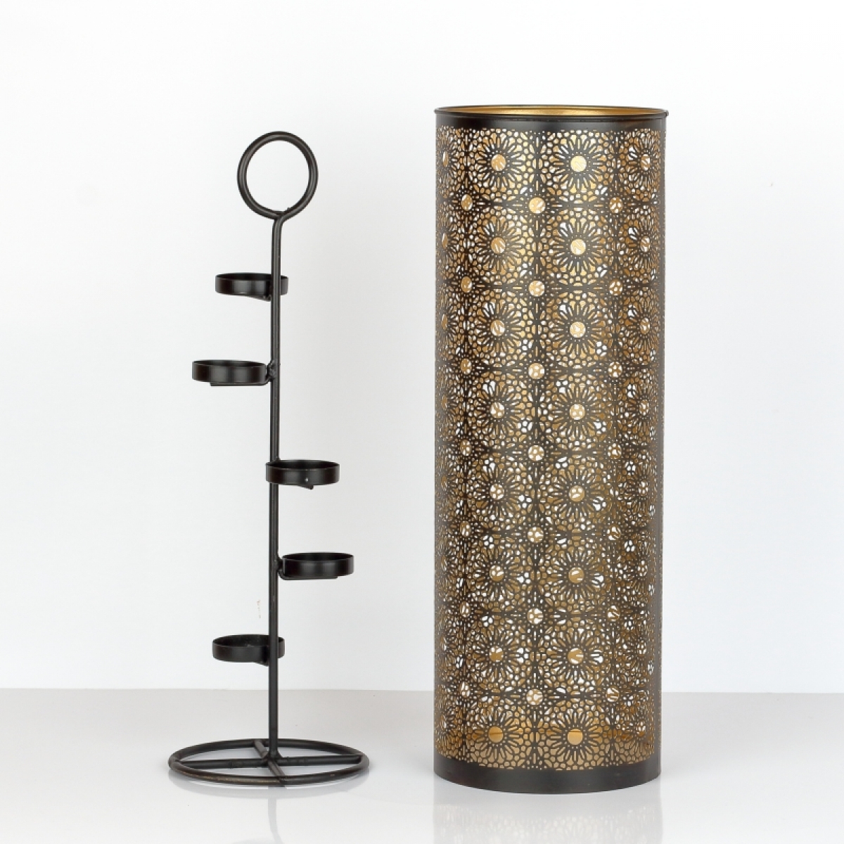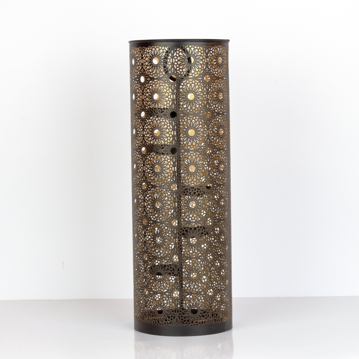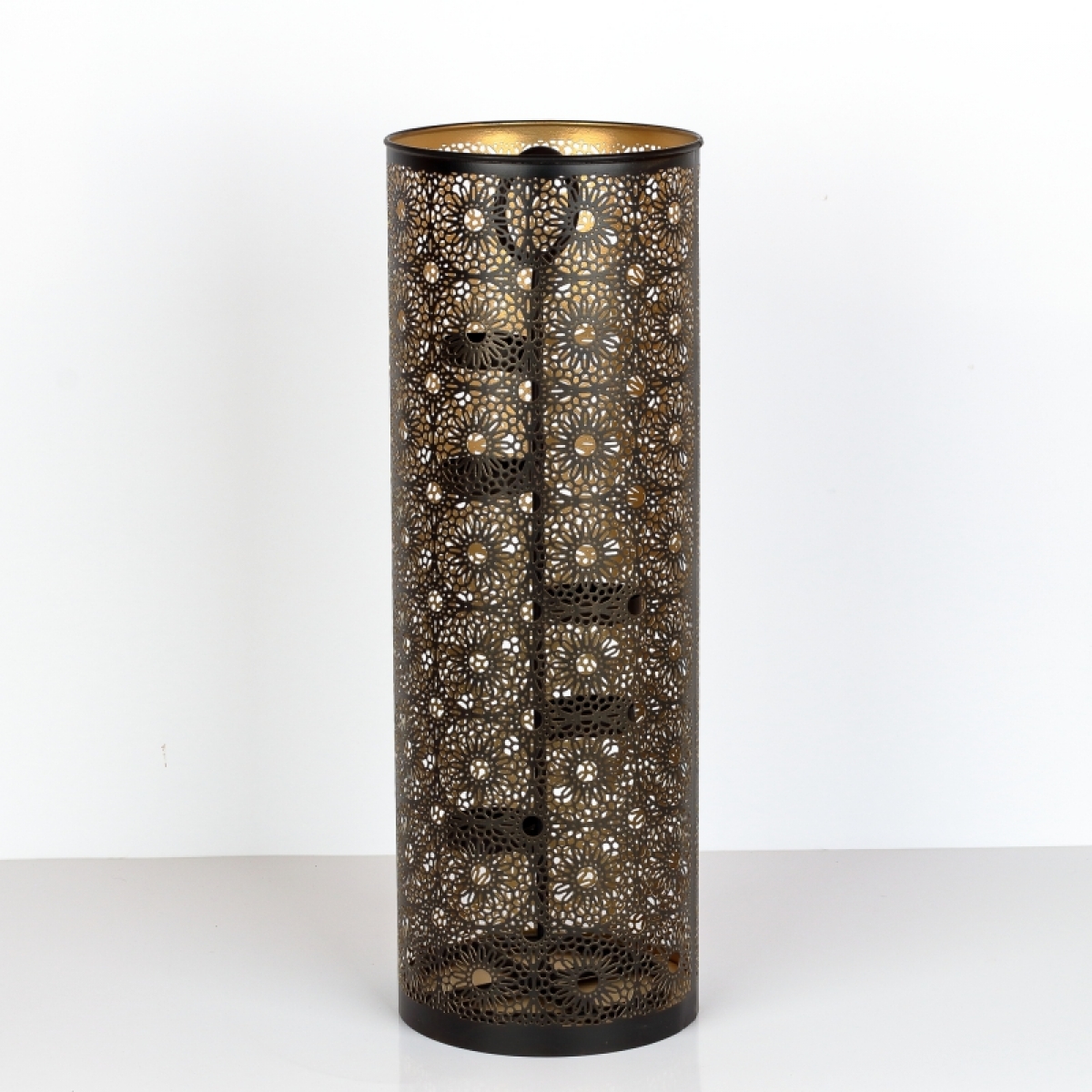 Kovový svietnik na čajové sviečky 50cm Vám pomôže doma navodiť hrejivú atmosféru. Po zapálení sviečok svetlo preniká cez nespočet malých otvorov, ktoré budú v priestore a na stenách tvoriť zaujímavé obrazce.