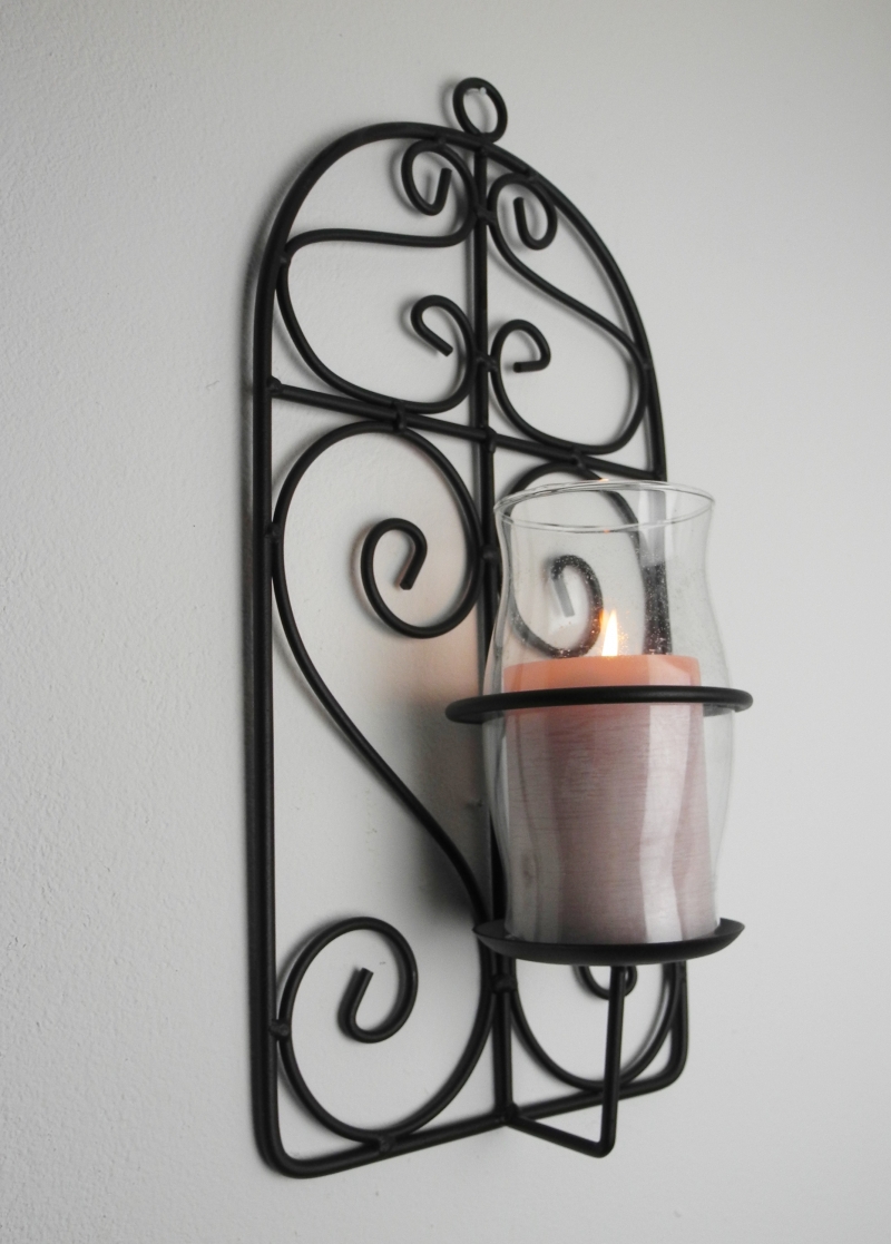 Kovový svietnik je určený pre zavesenie na stenu. Navodí krásnu atmosféru a osvetlí interiér príjemným tlmeným svetlom.