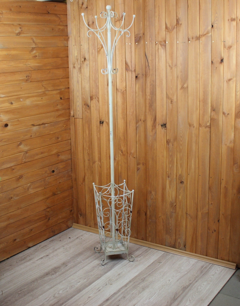 Stojan má oblé tvary, vrchné konce vešiaku (guľatiny) sú zakončené malými guličkami. Spodný diel (stojan na dáždniky) je bohato zdobený ornamentmi.