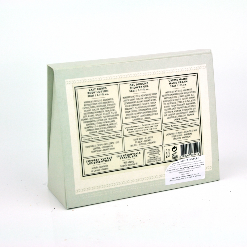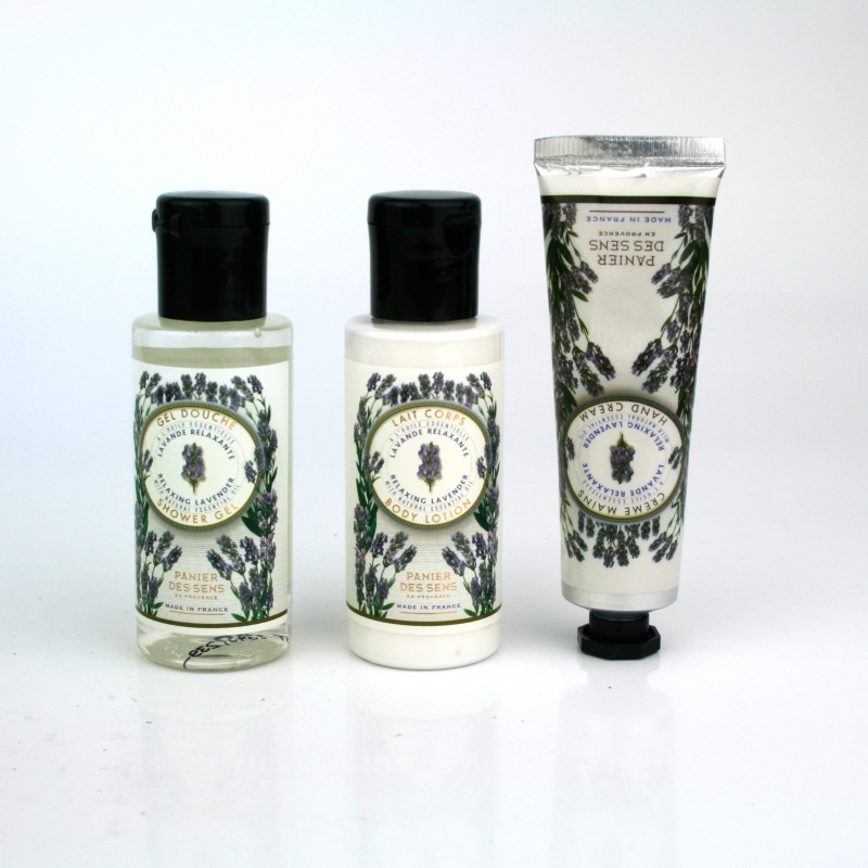 Kozmetický set levanduľa obsahuje telové mlieko 50ml, sprchový gél 50ml a krém na ruky 30ml.