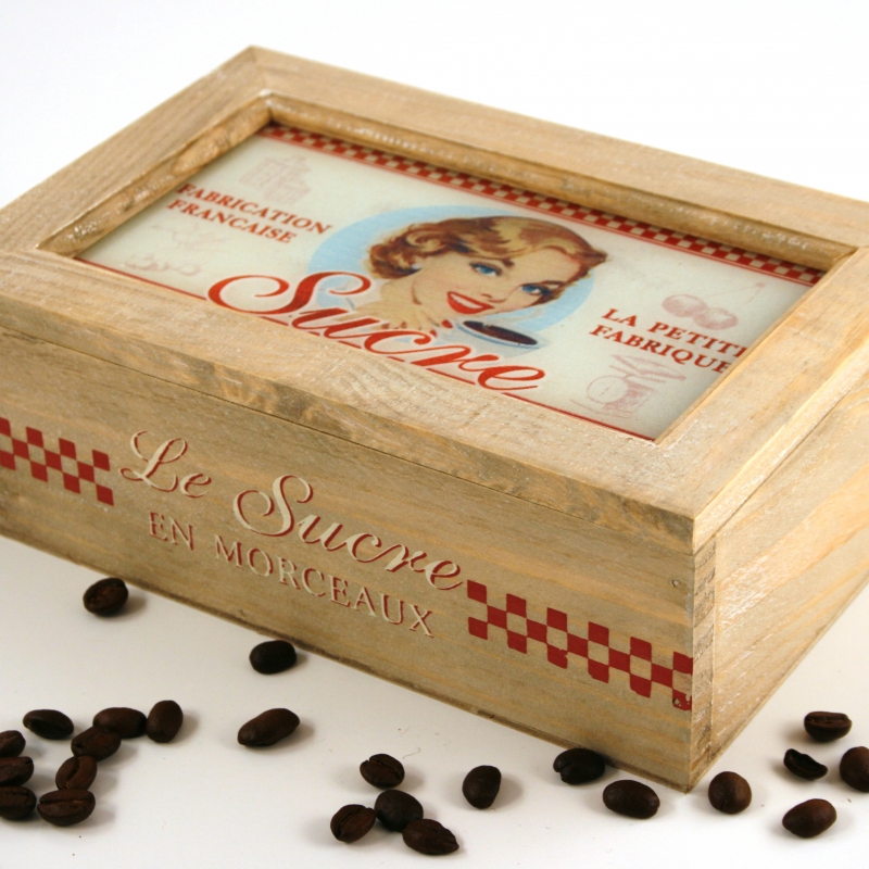 Že je krabička určená na cukor , napovedá aj francúzsky nápis na viečku aj bočnej strane krabičky. S touto krabičkou bude vaše stolovanie štýlové a príjemné.