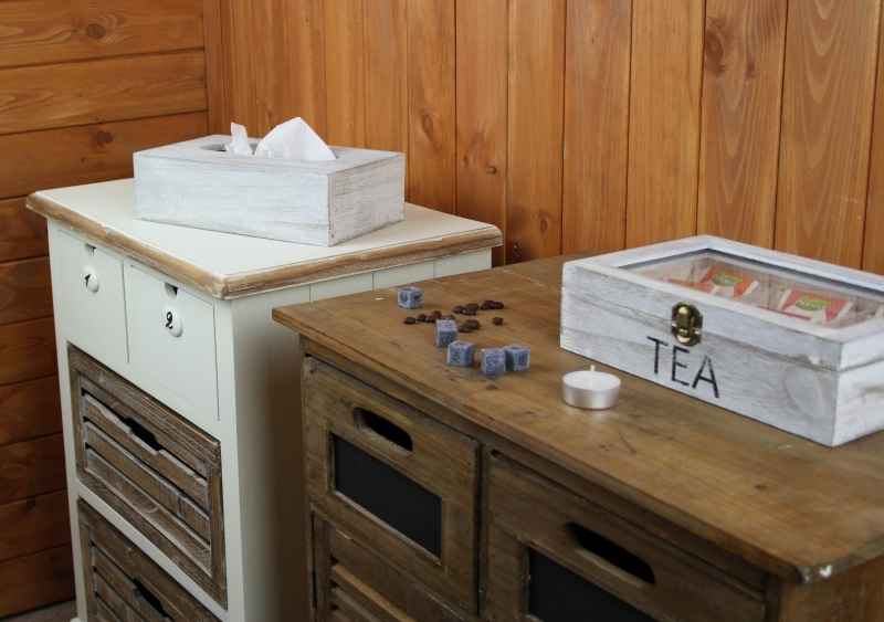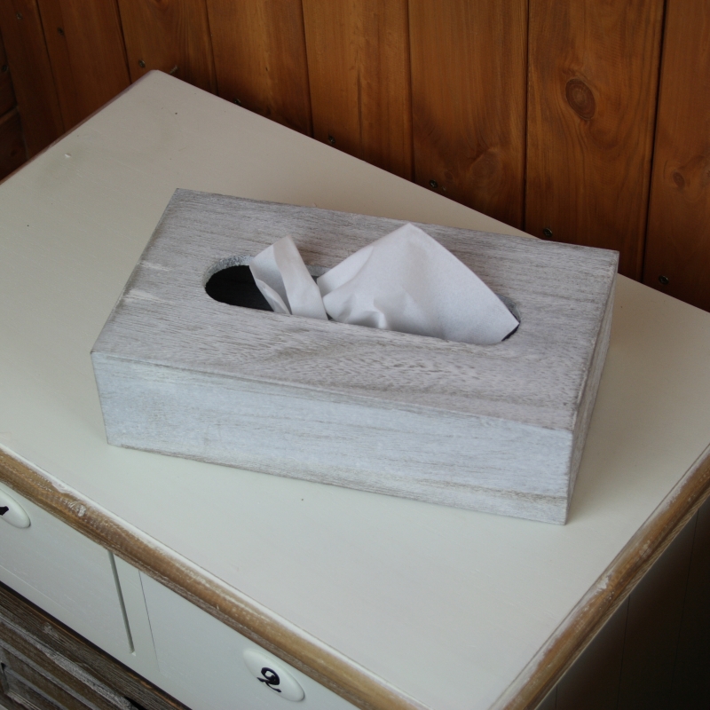 Praktická drevená krabička s patinou a vysúvacím spodným dielom, do ktorého uložíte bežnú papierovú krabicu s kozmetickými vreckovky. Tým vyriešite problém mať vreckovky neustále po ruke a pritom nenechať balíčky povaľovať po celom dome.