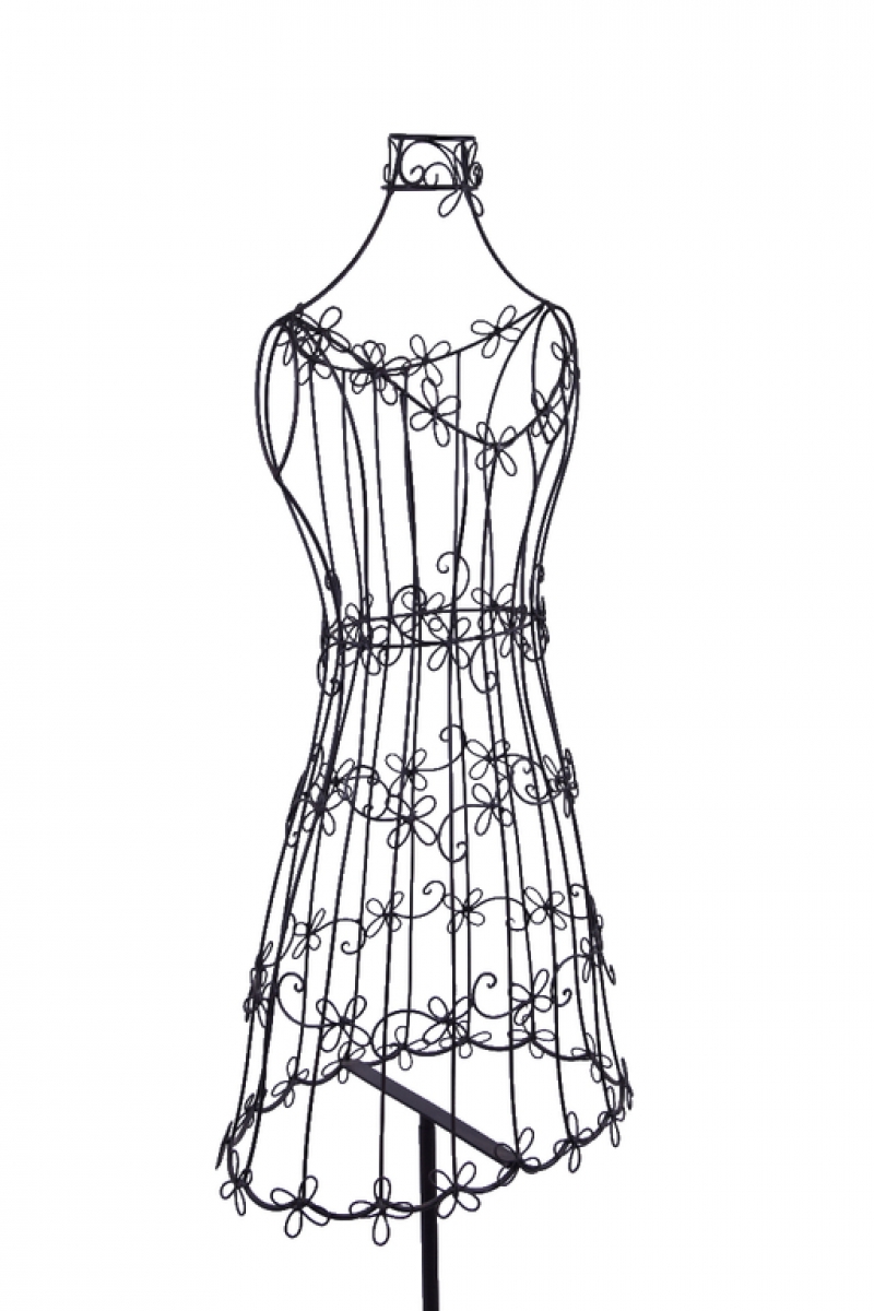 Telo krajčírske panny alebo skôr šaty sú ručne vyrábané vyrobené splietaním kovového drôtu a sú zdobené motívom kvetiny. Krajčírska panna stojí na stabilnom kovovom podstavci.