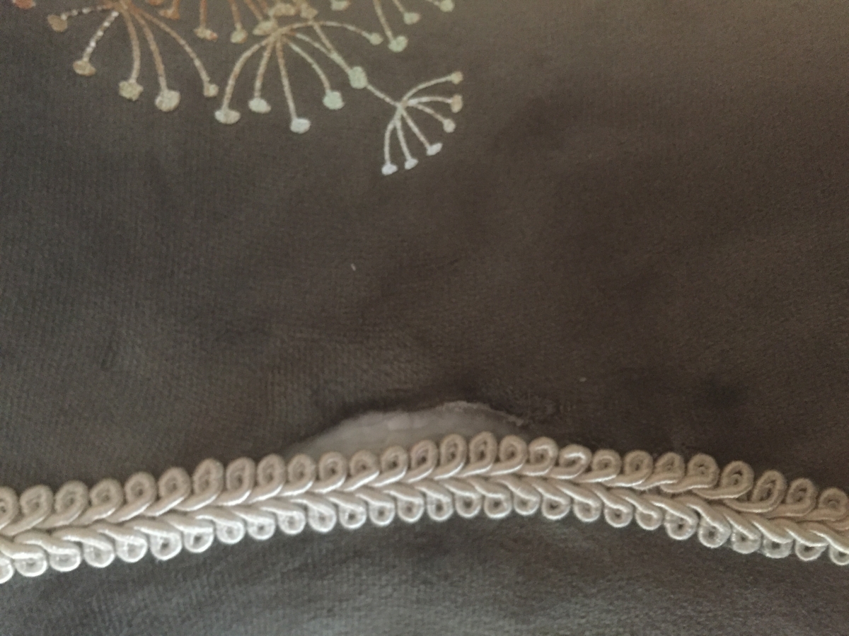 Krejčovská panna byla vyřazena z důvodu vadného uchycení látky na dvou místech, viz. fotografie počkození.