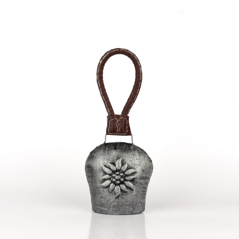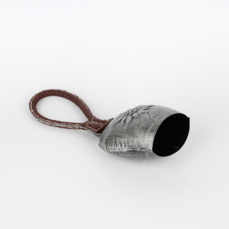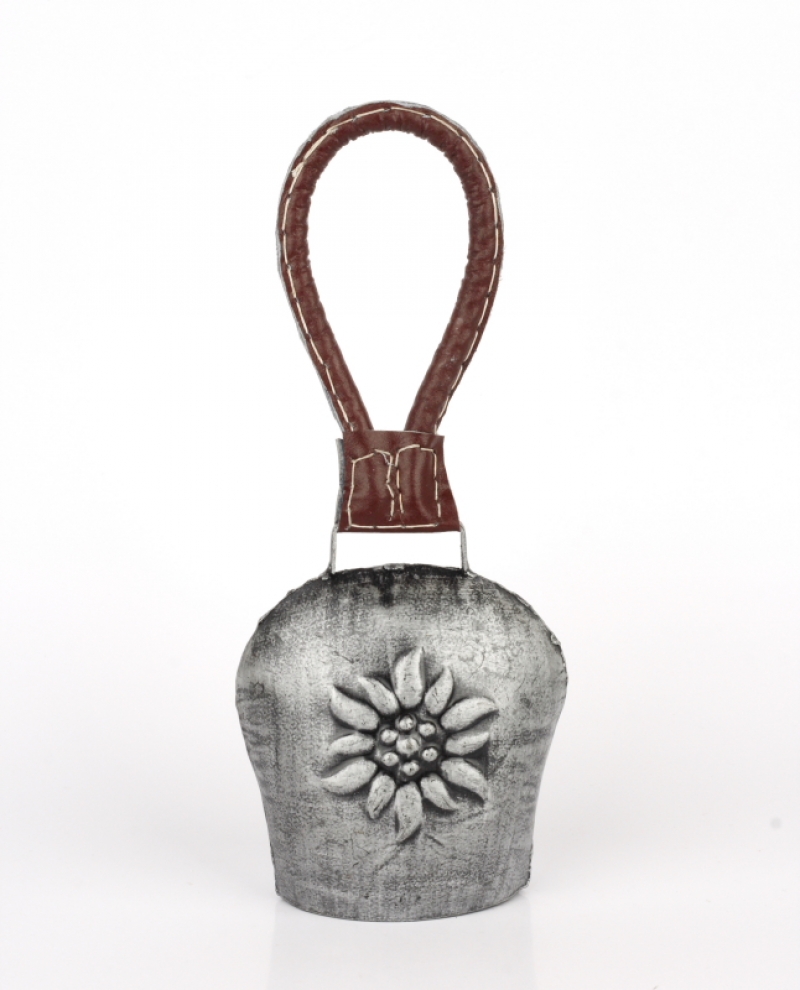 Kovový zvon zdobený motívom kvetiny a koženkovým veľkým uchom je typickou Chalupársky dekorácií.