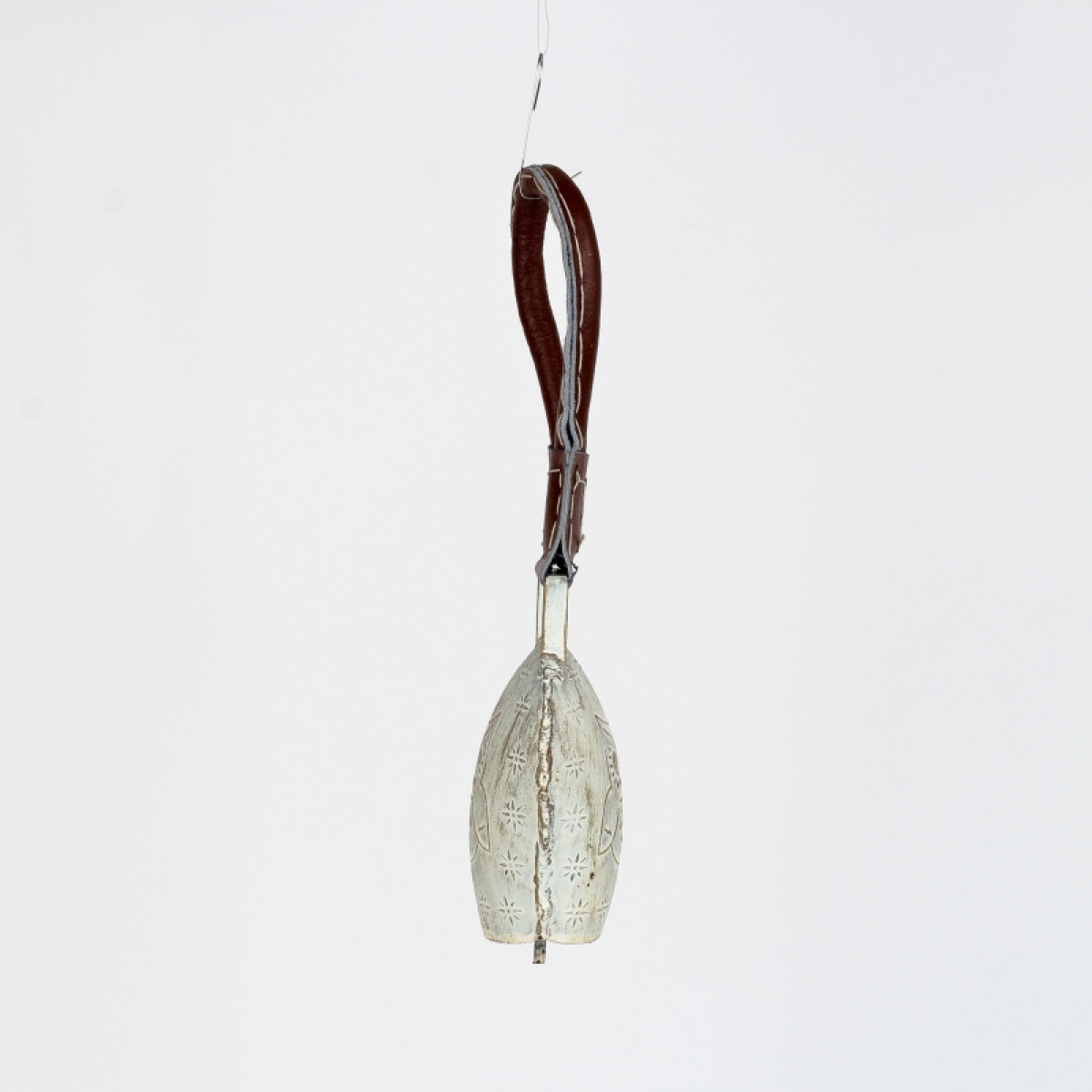 Kravský zvonec vyrobený z plechu s motivem sovy.