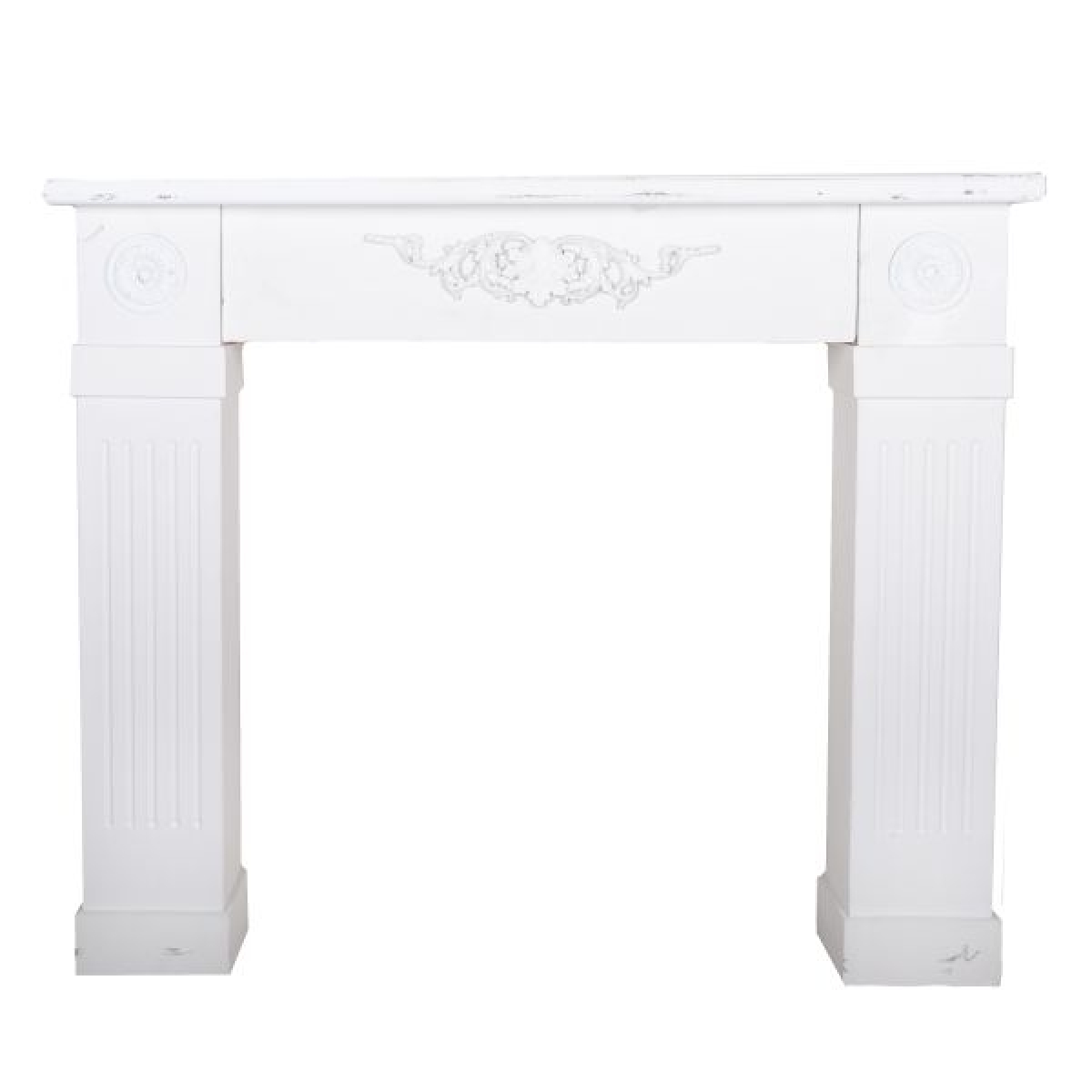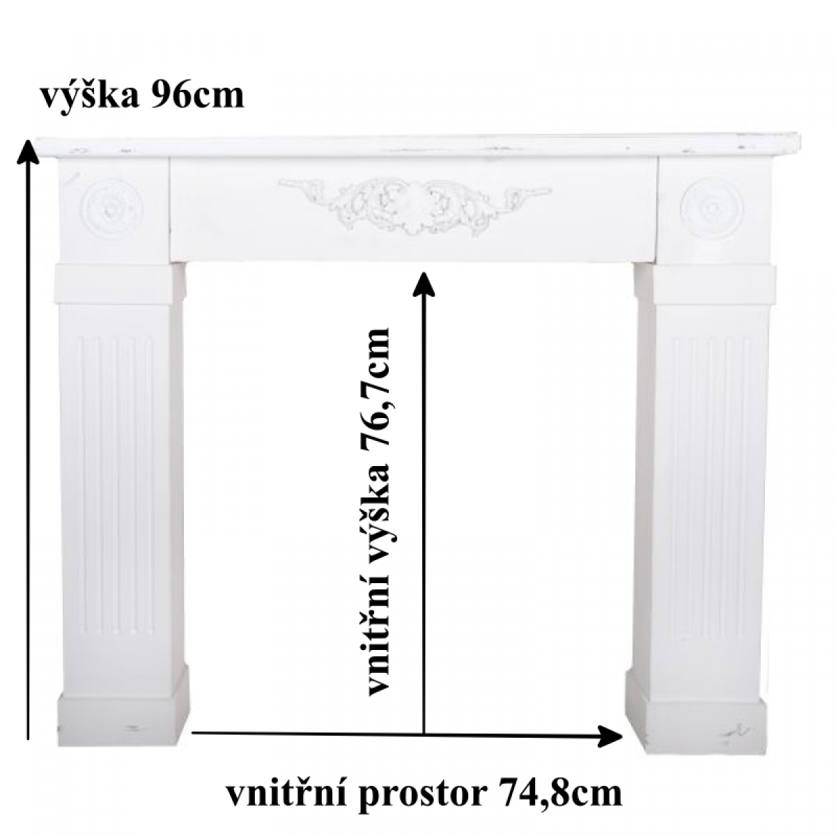Krbová rímsa biela / falošný krb - zdobené nohy 115×96×15cm vám dopraje užiť si krásu krbu aj tam, kde vám bývanie klasický krb neumožňuje. Praskanie dreva bezpečne nahradí zapálené sviečky a poskladané voňavé klátiky dreva.