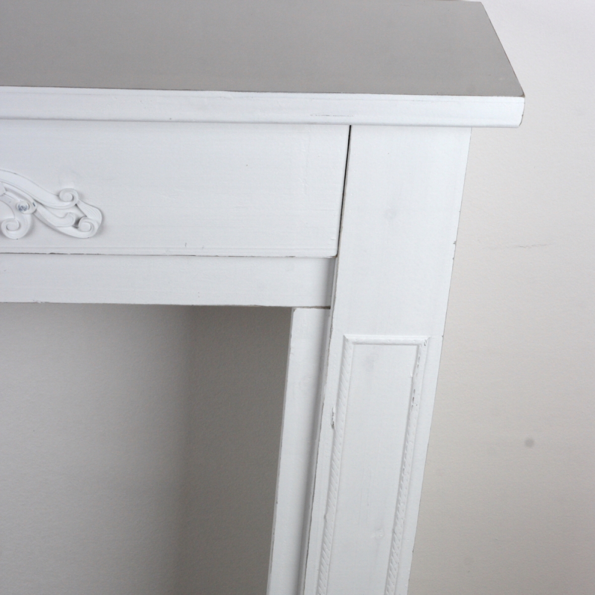 Krbová římsa s prostornou vrchní odkládací deskou je finálně připravena na použití a často ji zákazníci využívají ihned po se stavení, které nezabere více než 10 minut. Krbová římsa má na povrchu pouze základní nátěr s křídovou patinou a byla vyřazena z důvodu nalezení na povrchu oděrků. Přirozené nedokonalosti dřeva, jako např. suky, které ale dodávají tomuto výrobku romantický a naprosto přirozený vzhled originálního výrobku.
