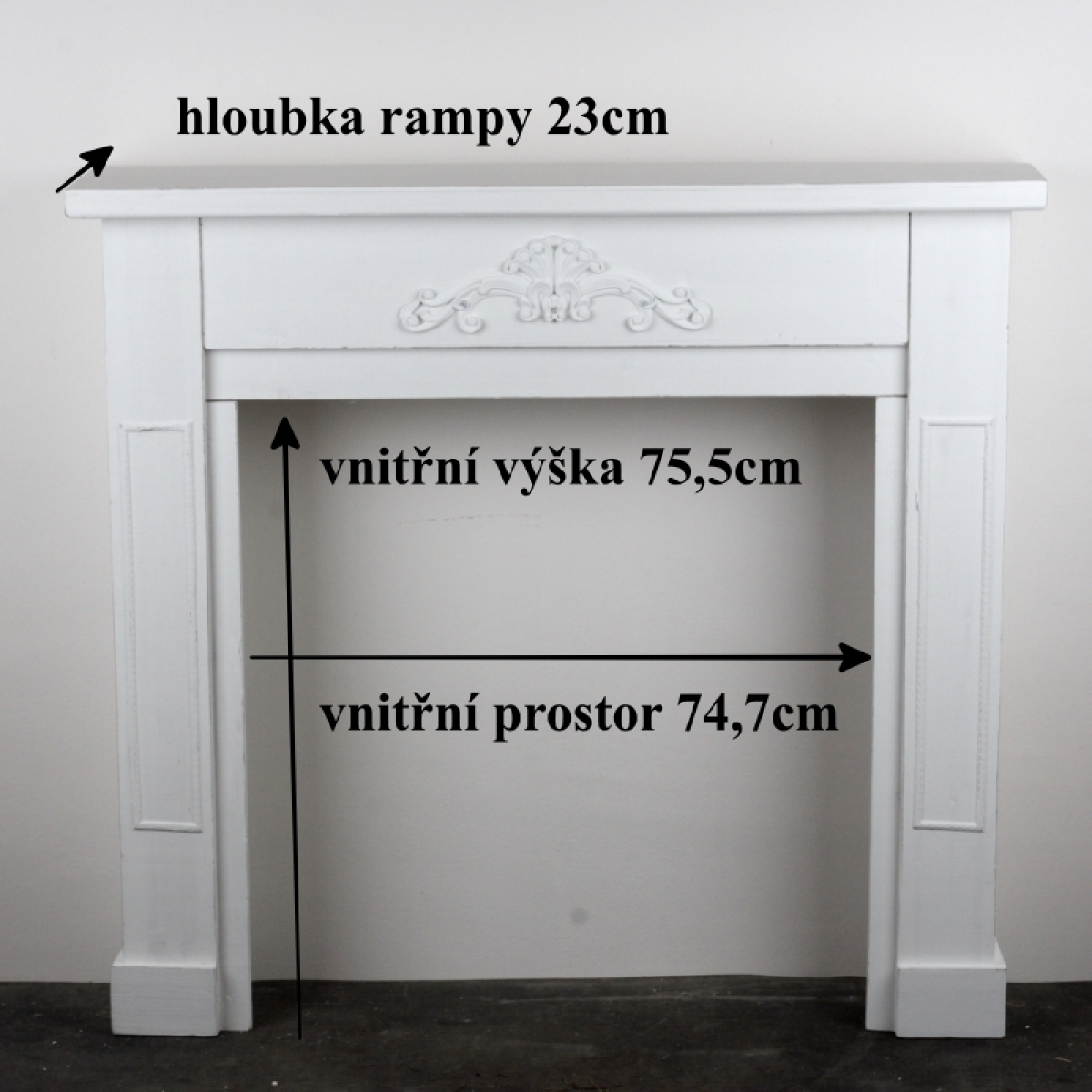 Praktická u tohoto typu krbové římsy je především odkladová plocha hluboká 23cm.