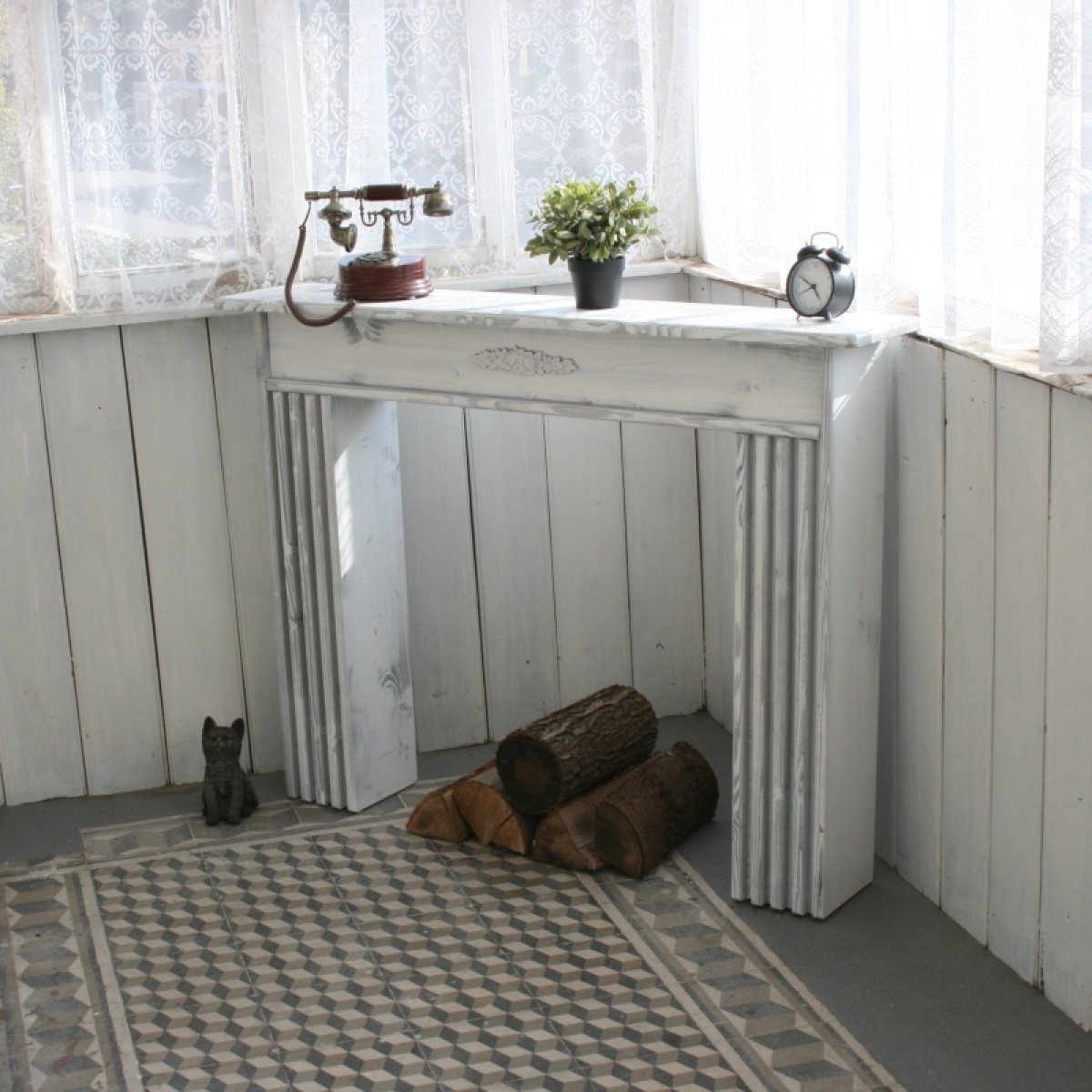 Falošná krbová rímsa bude krásnou dekoráciou. Môžete ju doplniť o elektrický krb alebo do voľného priestoru vyskladať klátiky dreva, ktoré ku krbu jednoducho patria.