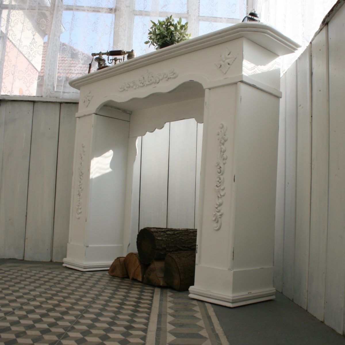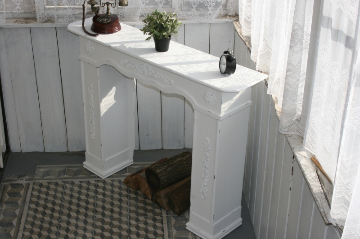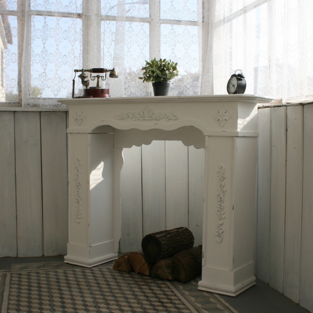 Falošná krbová rímsa bude krásnou dekoráciou. Môžete ju doplniť o elektrický krb alebo do voľného priestoru vykladať špalíky dreva, ktoré k krbu jednoducho patrí.