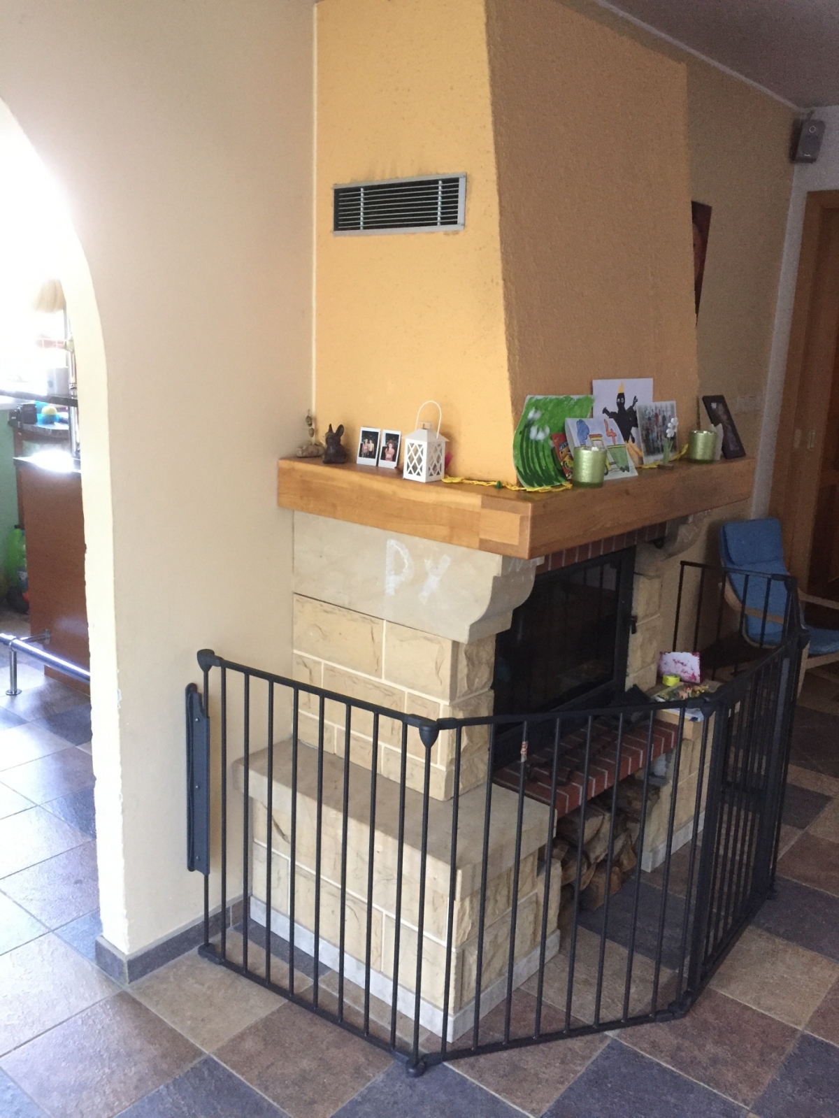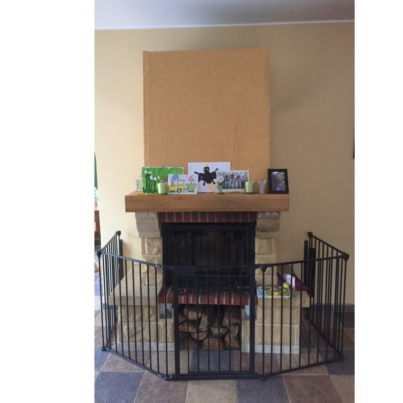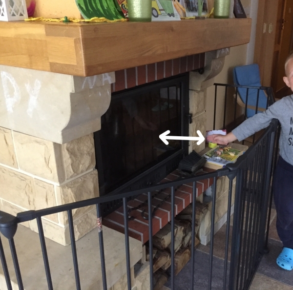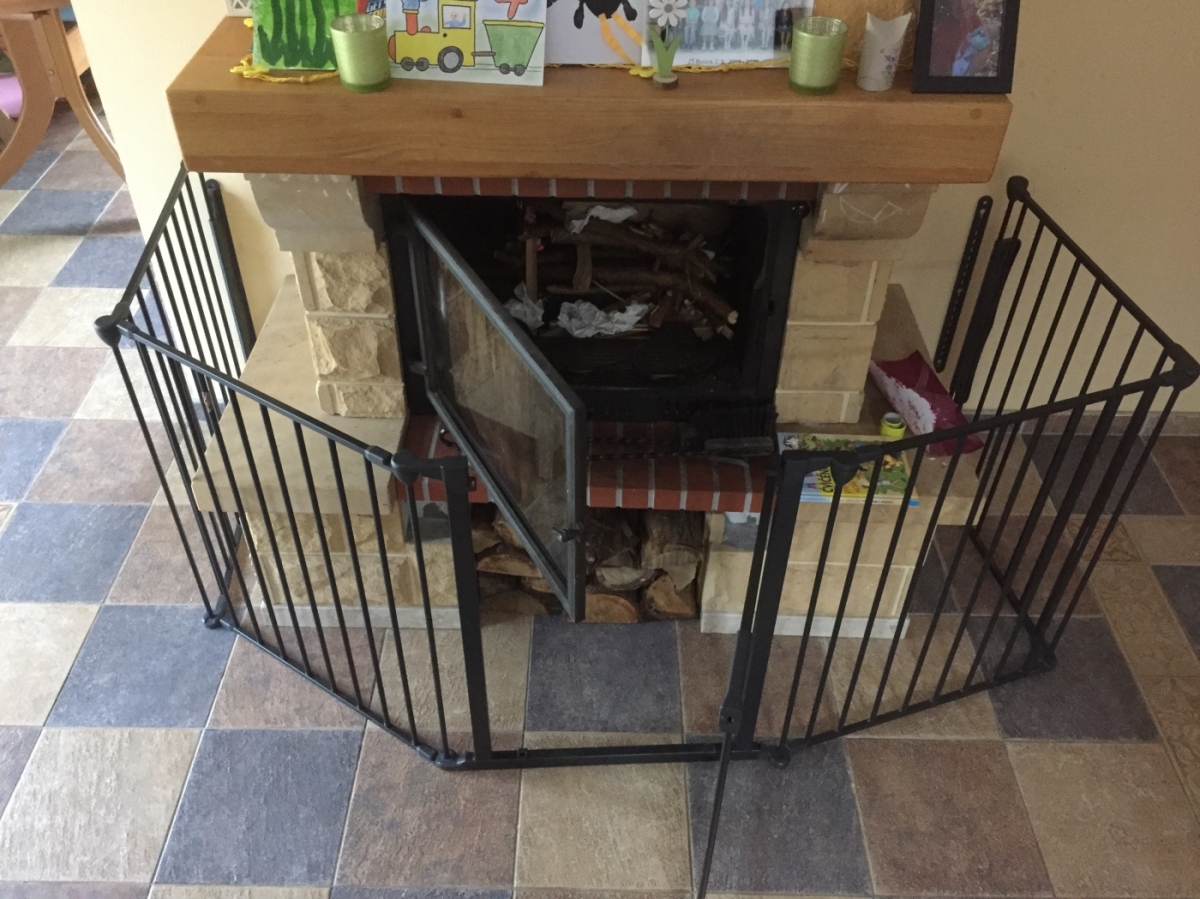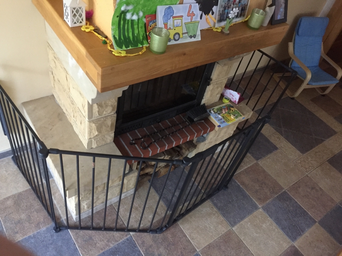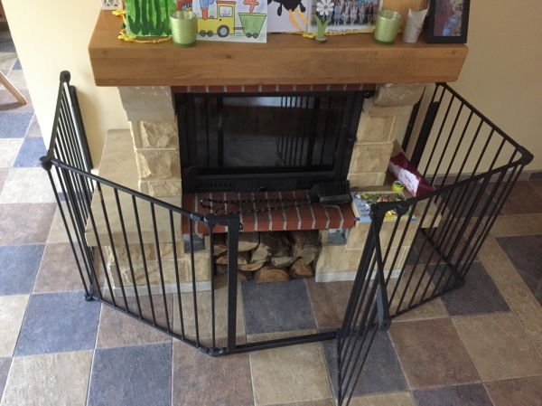 Krbová zástěna byla rok umístěna před krbem jako ochrana dětí před nebezpečím rozpáleného krbu.