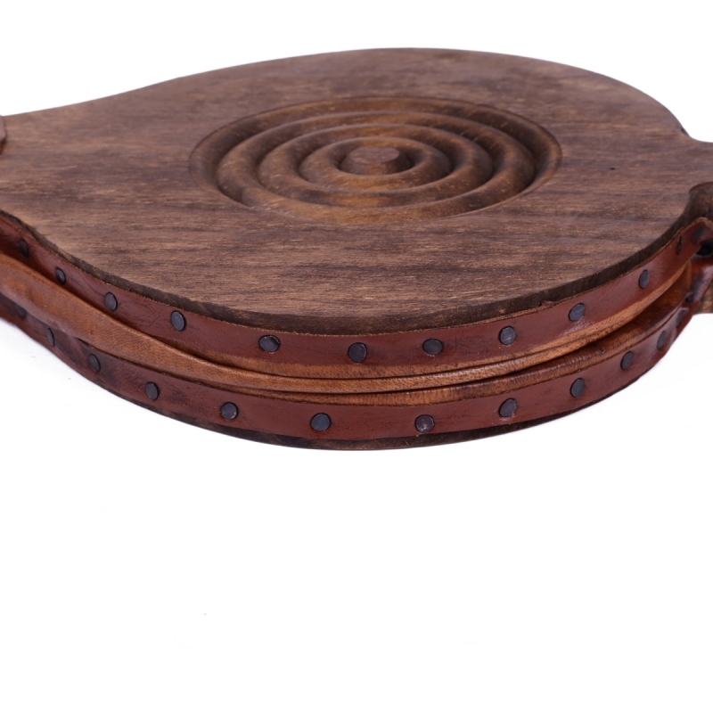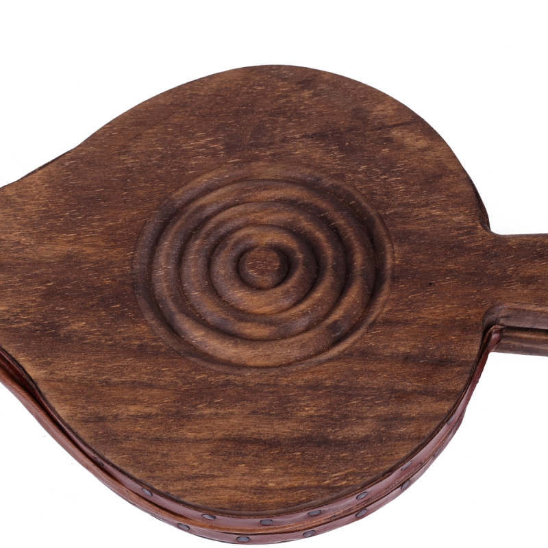 Funkčné dúchadlo z pravej kože a dreva je určené pre zakladanie ohňa v kachliach, krboch a griloch. Bok dúchadla je zdobený špirálou metódou vypaľovanie a kovovými cvočkami.