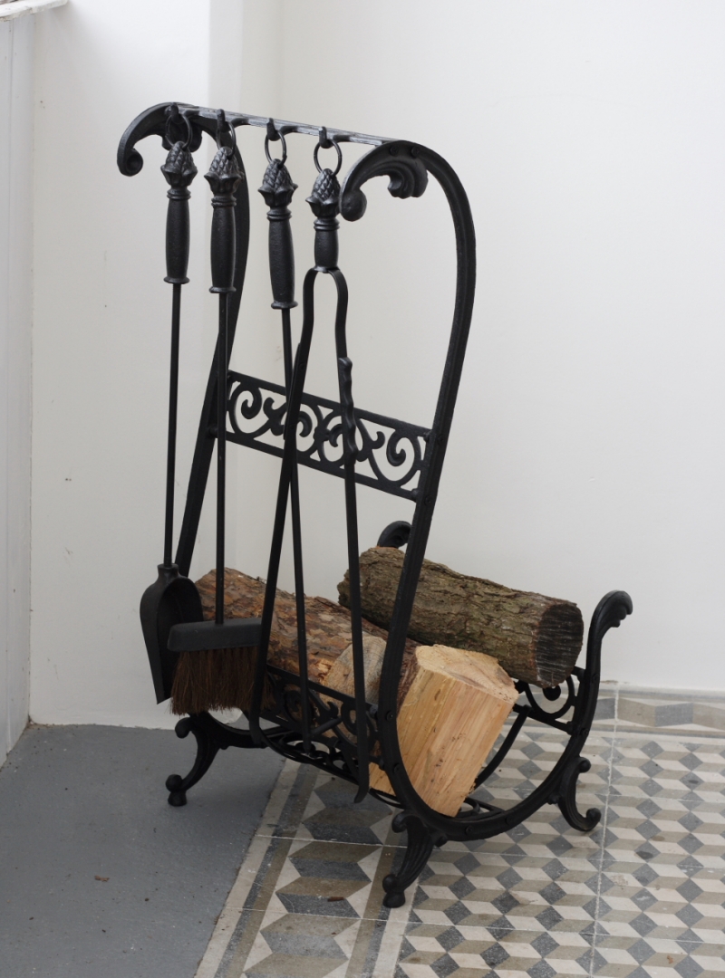 Krásny krbový doplnok s praktickým náradím, ktoré uľahčia prácu. Klátiky dreva v zásobníku krásne prevonia interiér. Teda len do tej doby, keď poslúži k podpálenia.