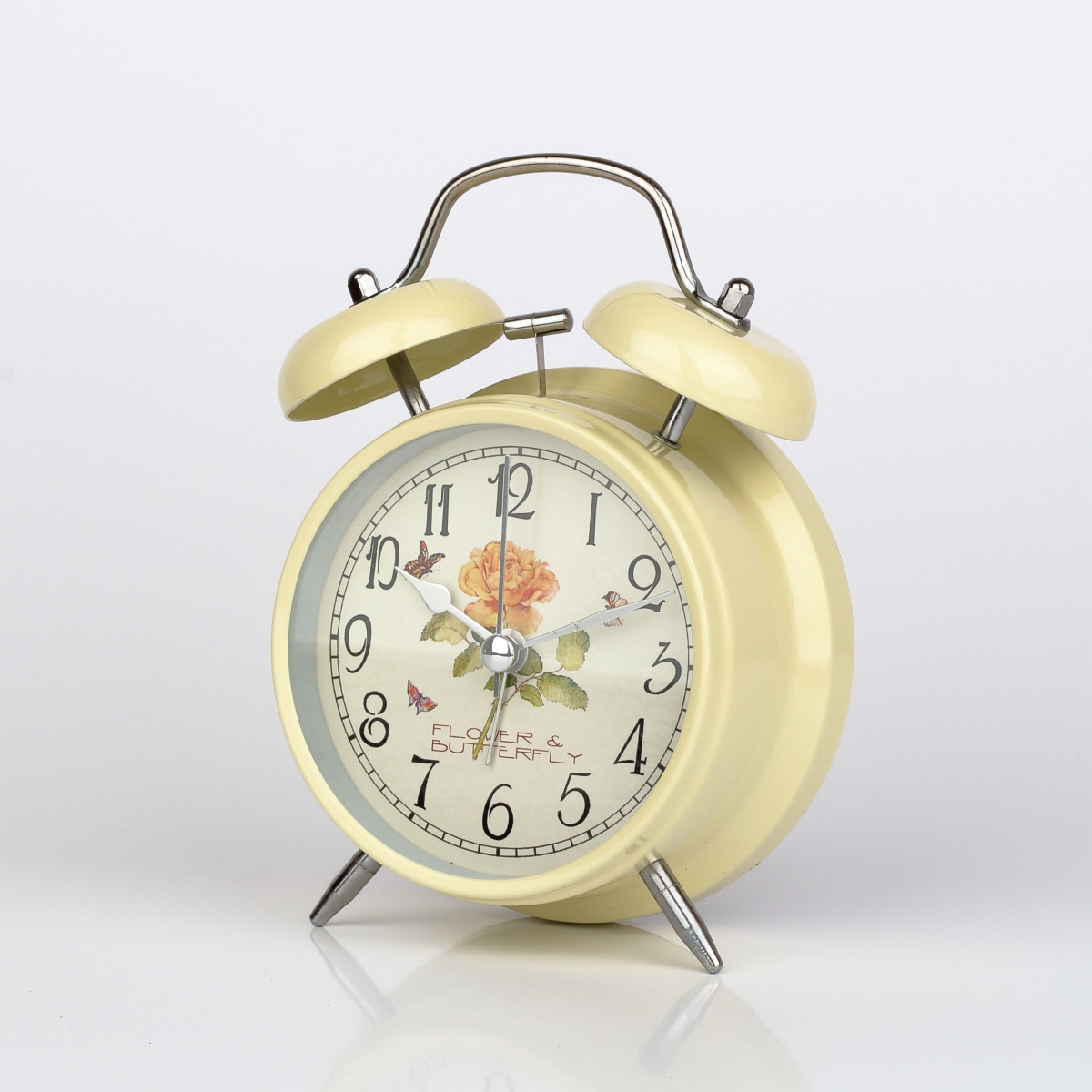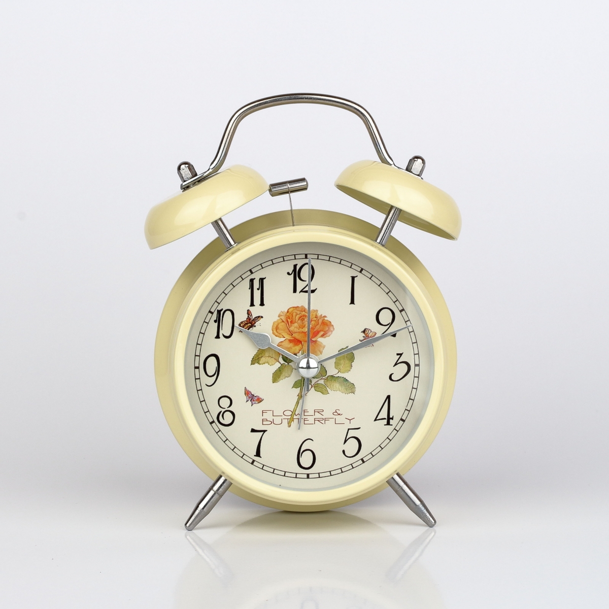 Krémové stolové hodiny / budík s ruží 12x15cm