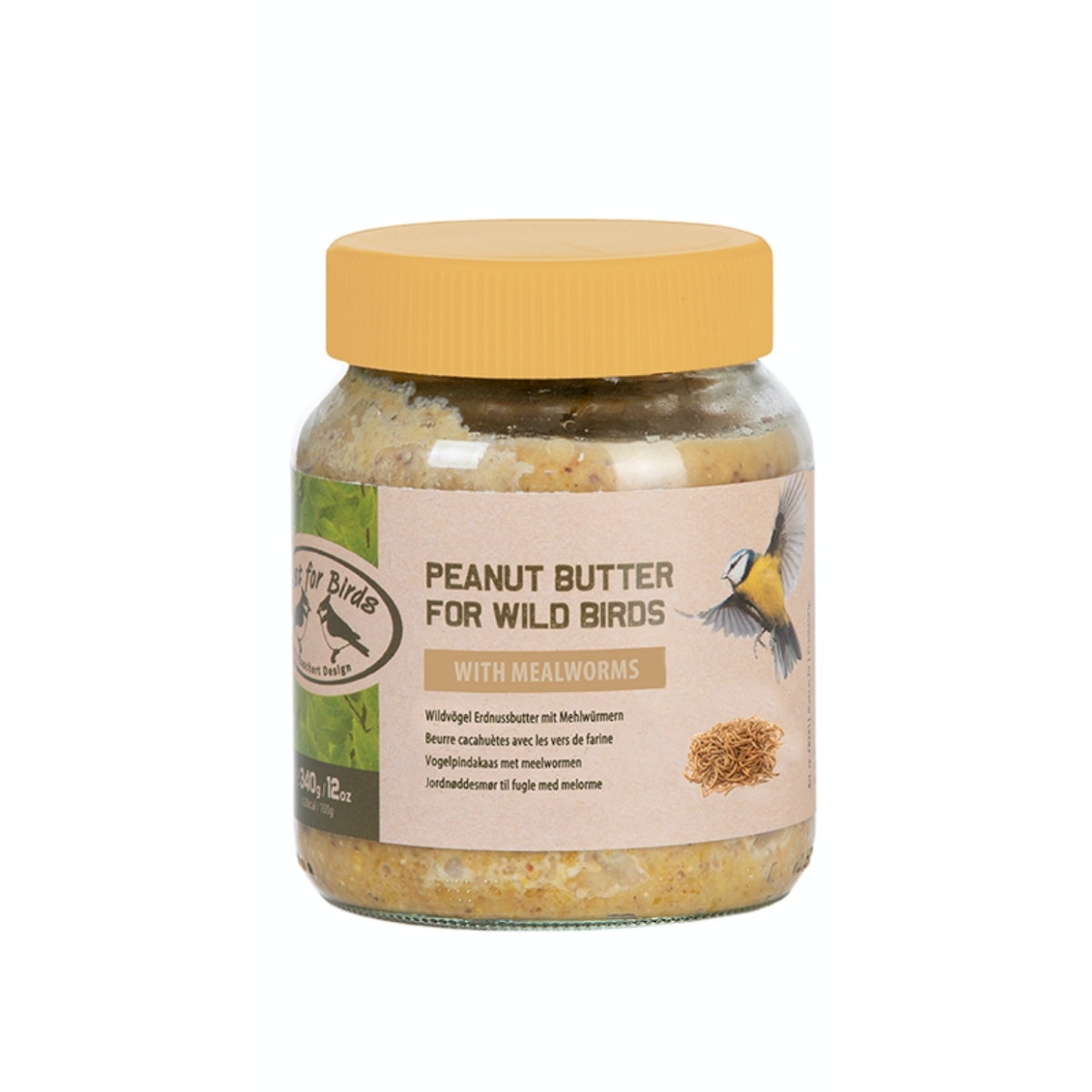 Krmení pro ptáky v podobě burákového másla s červy.